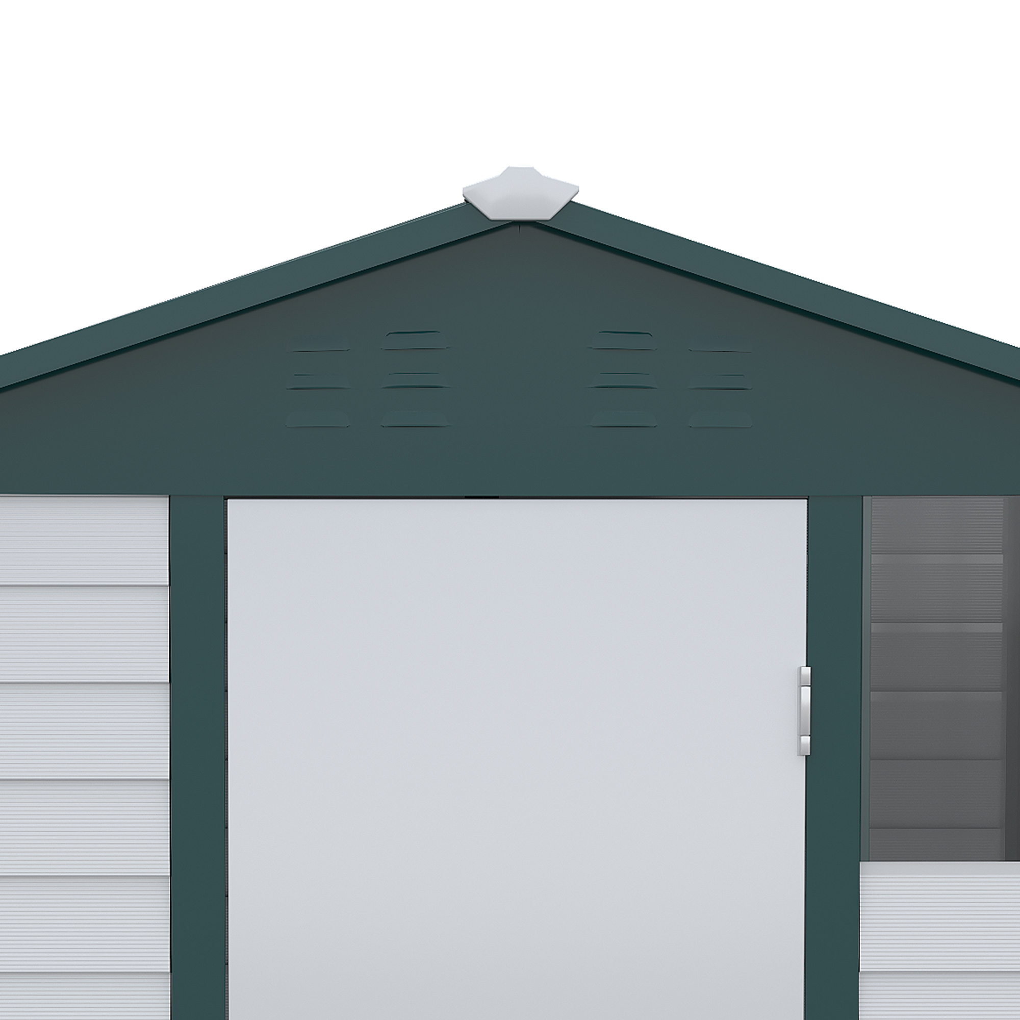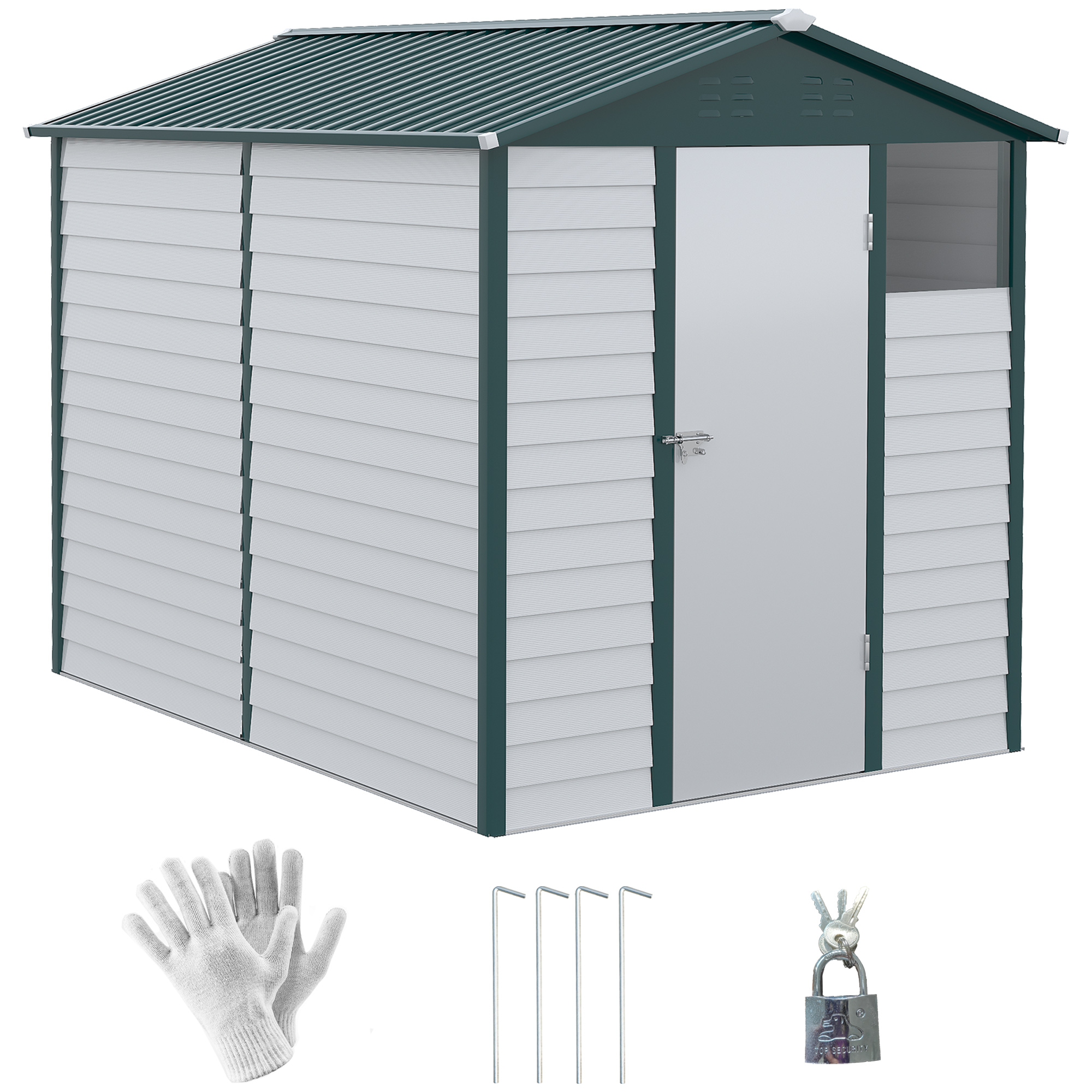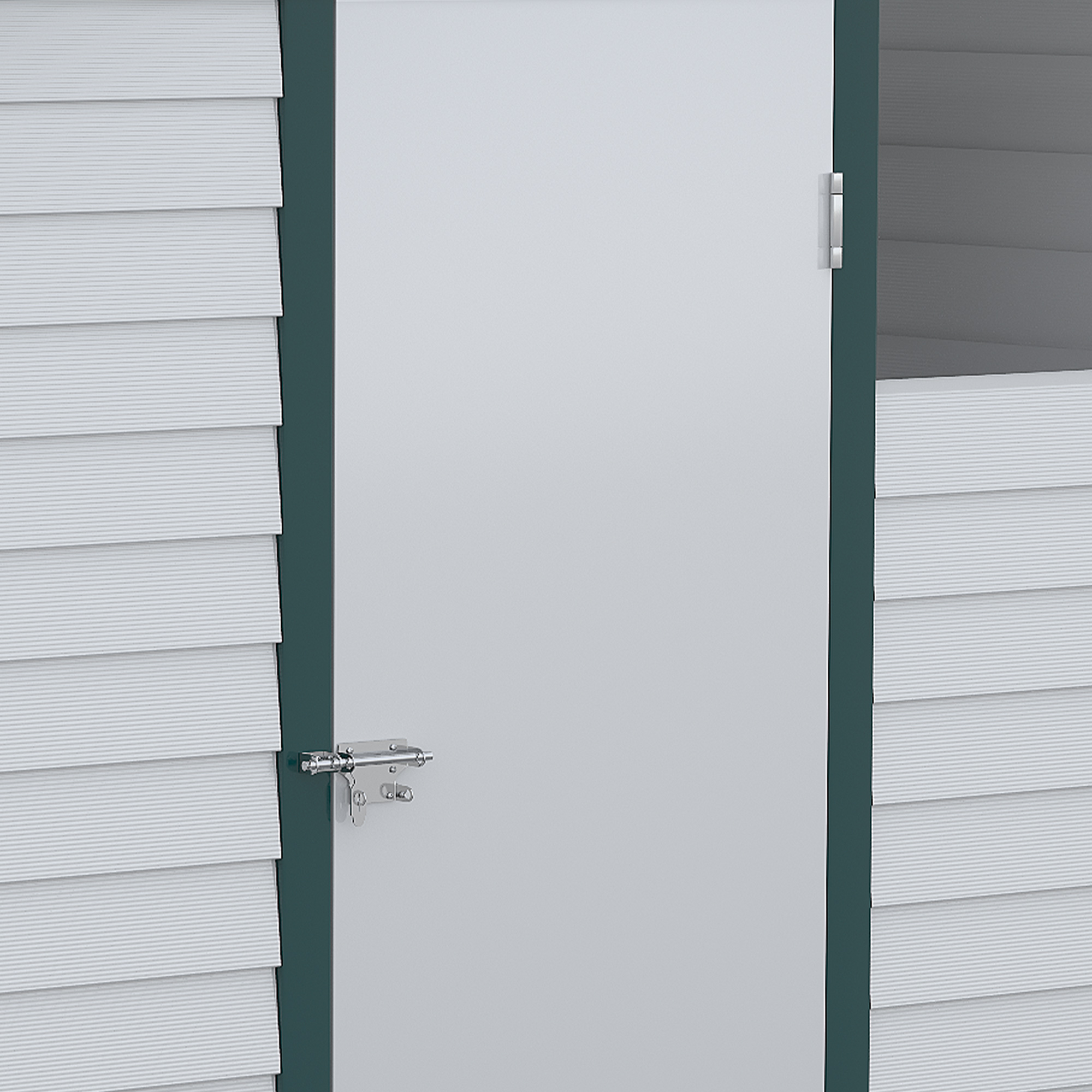 A strong and spacious metal storage shed, from Outsunny. Keep tools, equipment, outerwear and more stored together. Open size inside, means you can keep it how it is, or introduce some shelving for extra organisation. Made from galvanised steel, the panelled structure creates a safe shell from the elements. A window to let natural light in. Ventilation slots for keeping it fresh. Complete with a lock and three keys - so you can secure this outdoor storage shed from unauthorised access.