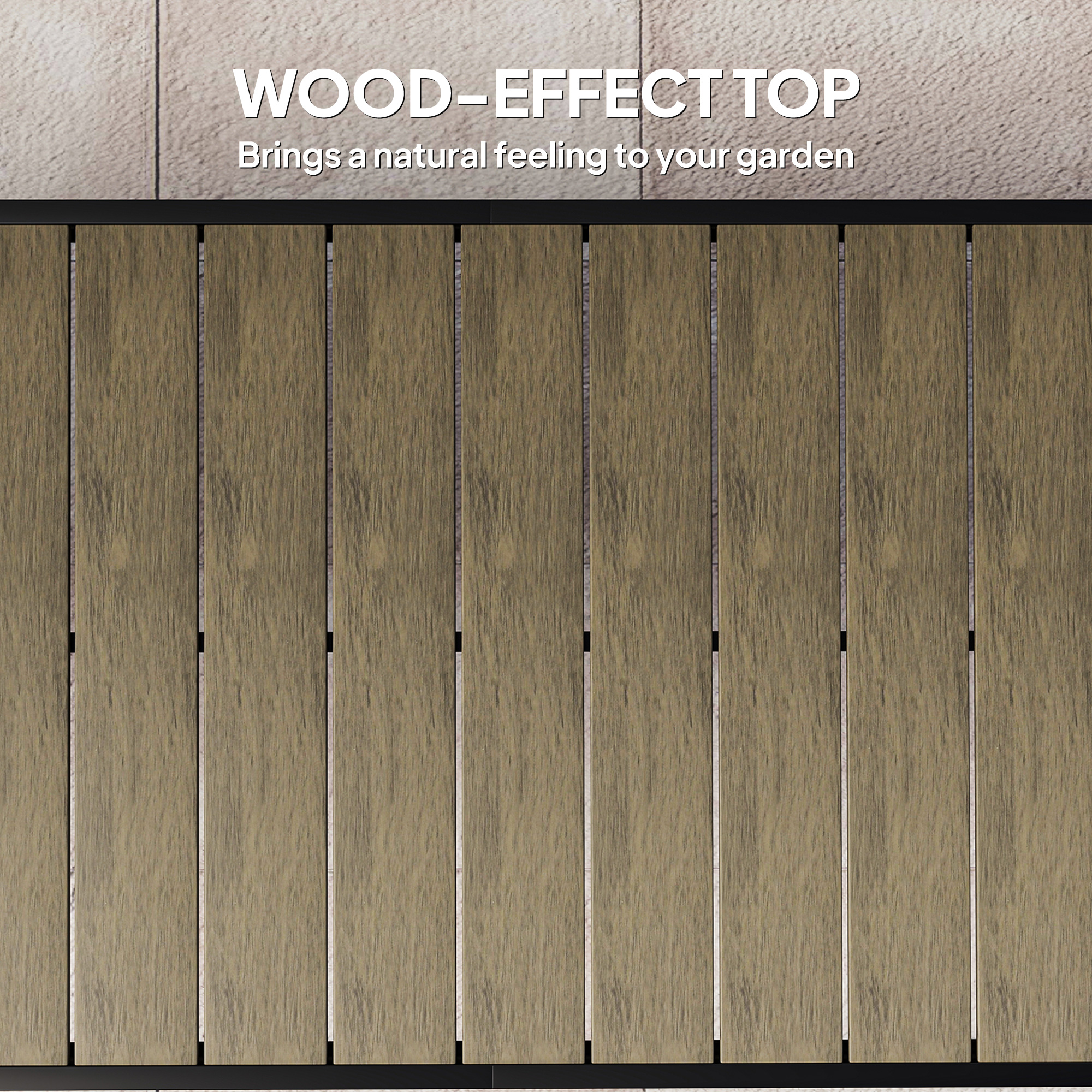 Serve dinner with plenty of company, thanks to this Outsunny garden table. Made from aluminium, the dinner table is a sleek piece which is also tough; the wood-effect finish gives it a beautiful look. Seats eight - plenty of room for you and company. Water-resistant makes it suitable for outdoor use. Complete with handy non-slip feet.