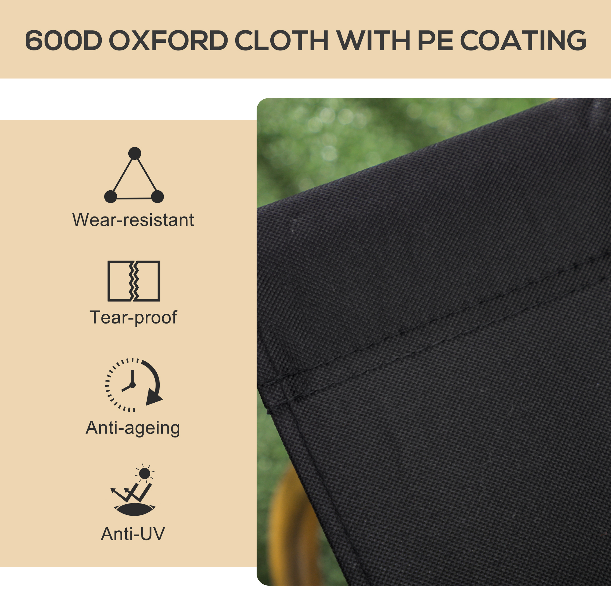 - Materials: Oxford Fabric (100% Polyester), Steel