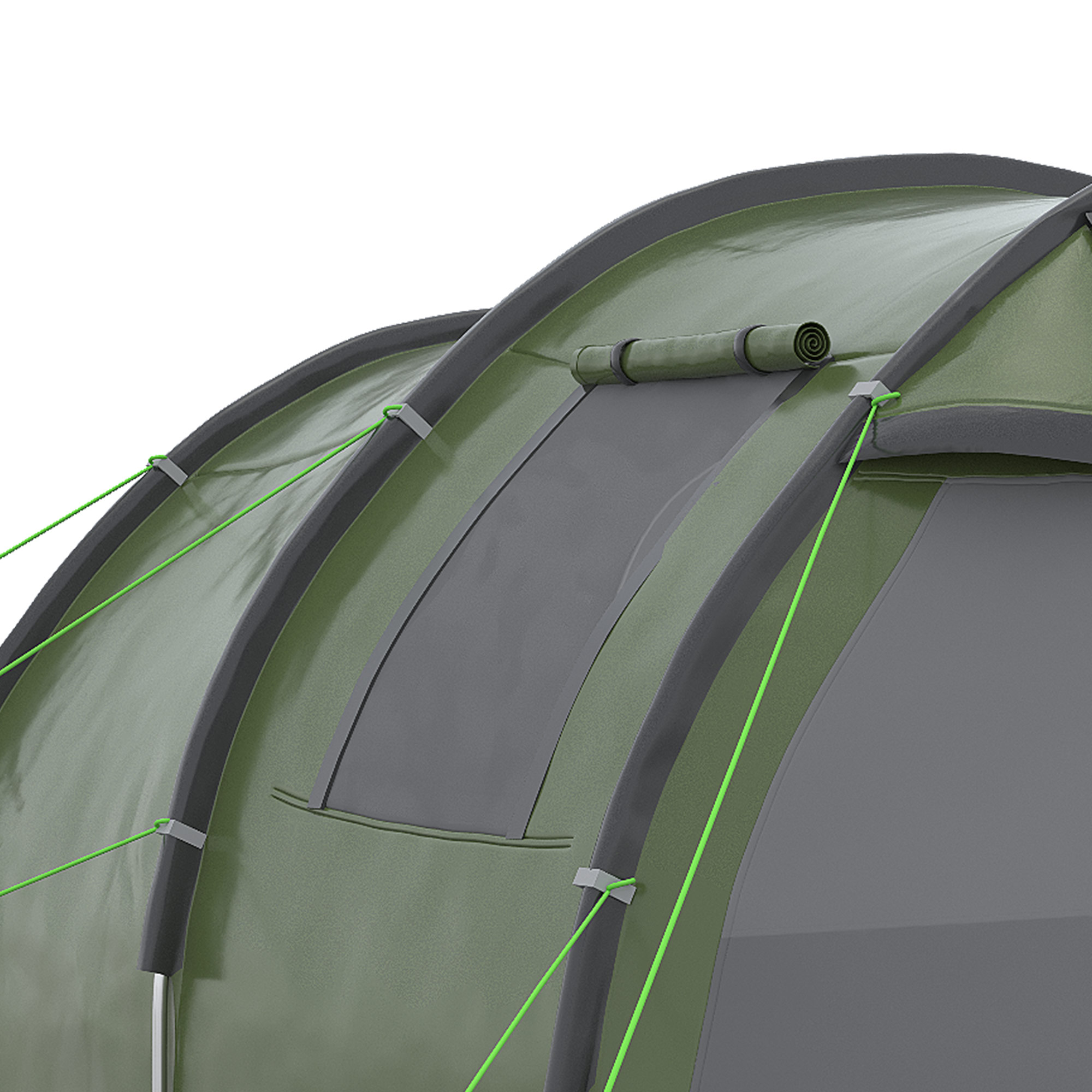This Outsunny dome tent provides plenty of sleeping and socialising room for outdoor adventures. Using fibreglass poles that stays in shape, it's fitted with a UV-resistant polyester canopy for proper shelter. PVC windows for outside/inside views and mesh windows for ventilation, which have covers for extra privacy. The inner space of this 4 person tent is divided into two rooms, with double doors for easy access.