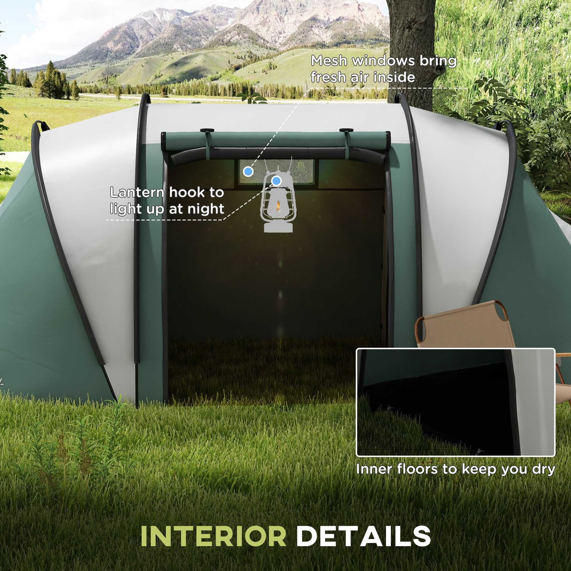 Camping memories, shared, with this Outsunny two-man tent. The three-room design gives you both your own bedroom with plenty of space, with the middle section to give you place to chill. The fabric shell is water-resistant up to 3000mm - great for mild to heavier weather conditions in spring and summer. With zipped doors for easy access and three mesh windows to bring fresh air inside, set comes with 16x ground stakes, 18x guy ropes, 2x support poles and carry bag.