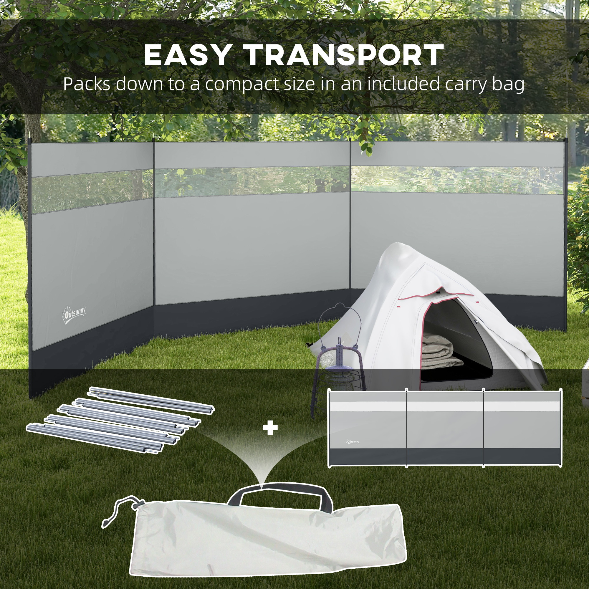 Protection at the beach, so you can enjoy the sunshine more: this Outsunny windbreaker. 440cm long provides plenty of shade, with a top transparent panel to bring in a gentle touch of light from the other side. Steel poles hold the fabric together and taught, firmly inserts into the ground. Kit comes with 12x ground stakes and 7x guy ropes to pin to ground for extra stability. Bag also included to carry around easily.