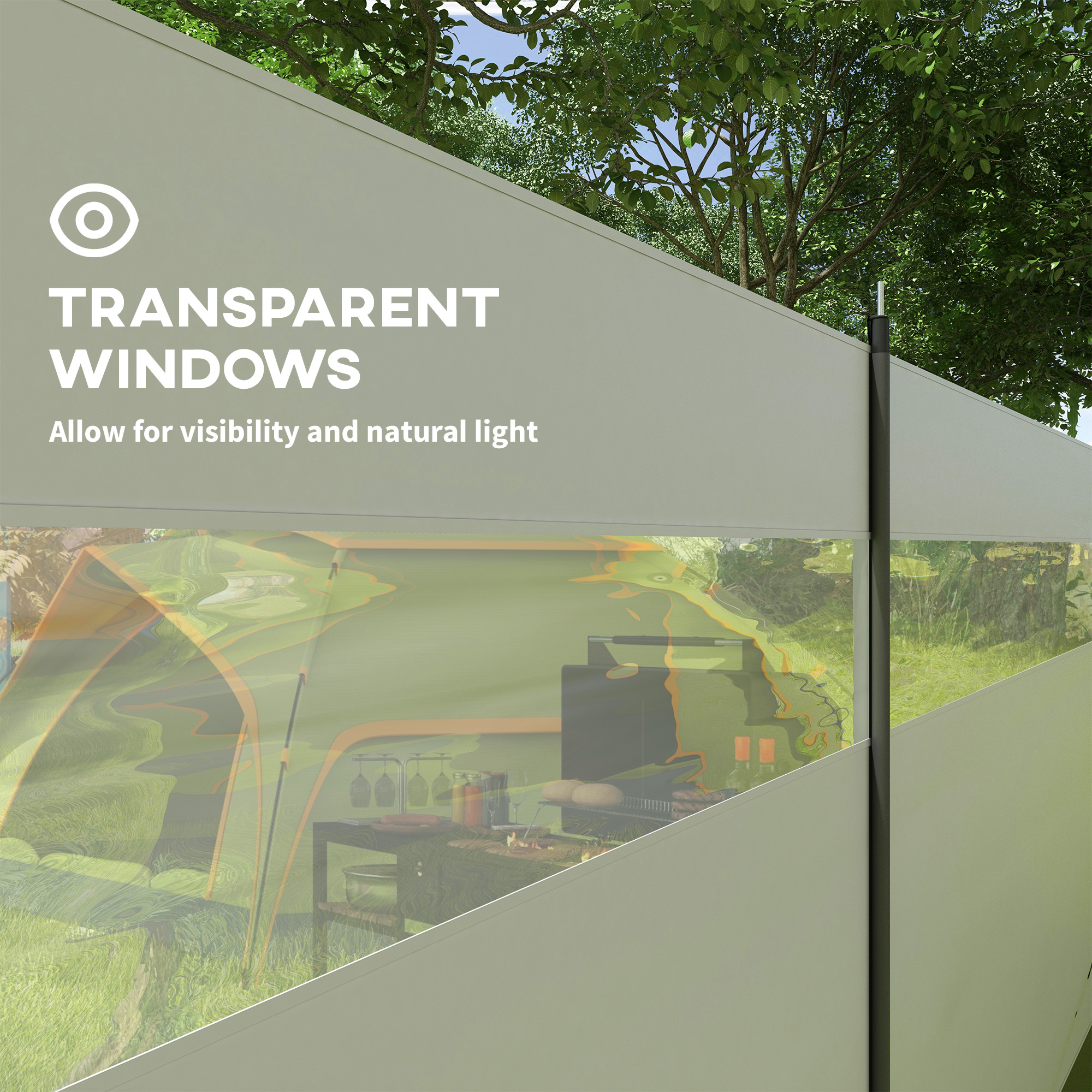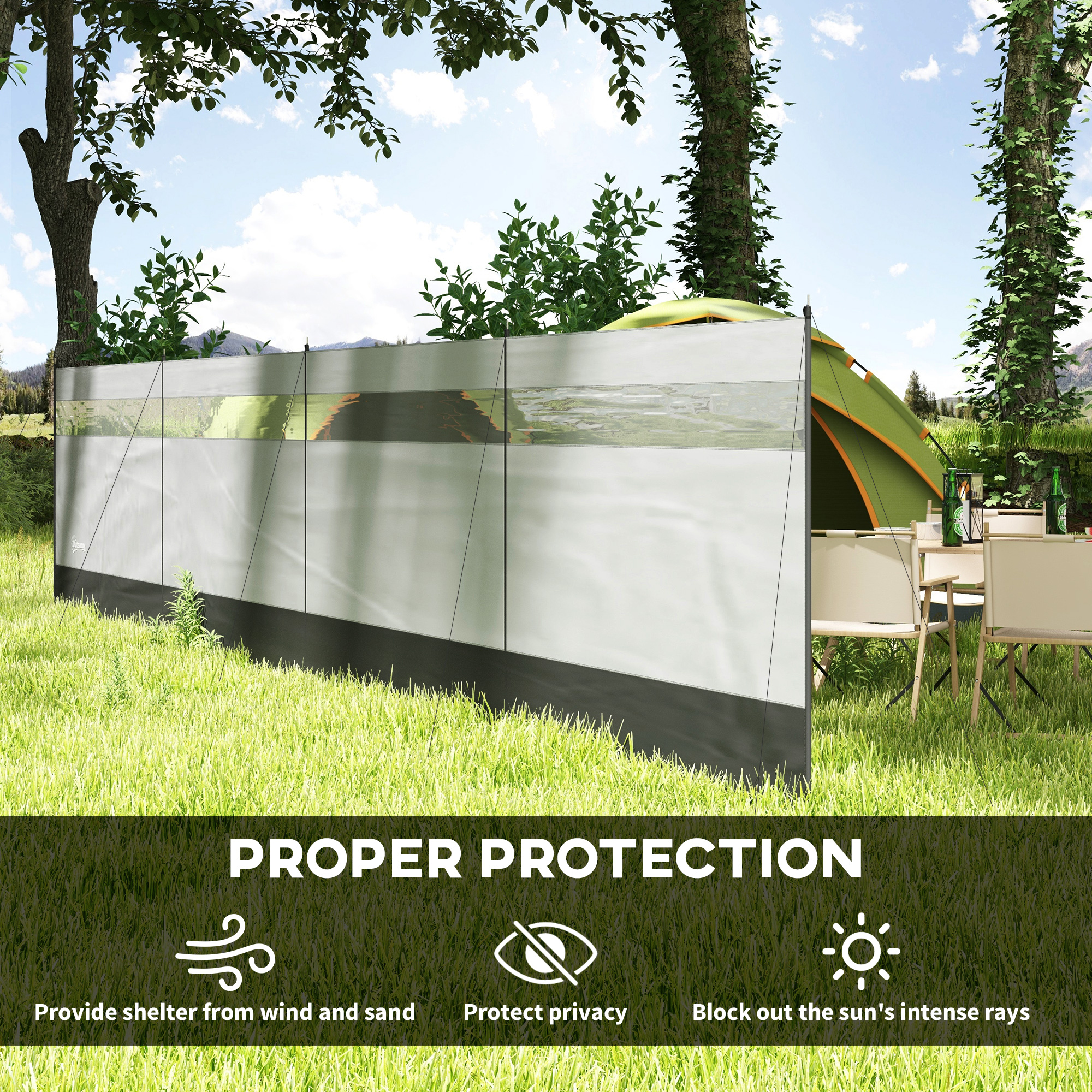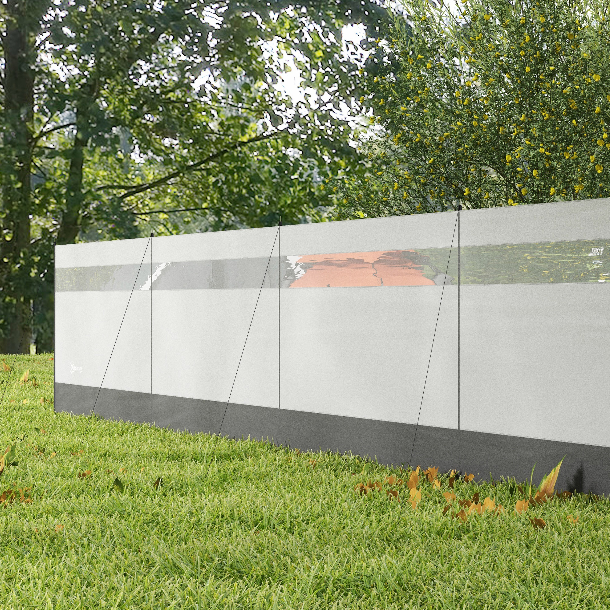 Protection at the beach, so you can enjoy the sunshine more: this Outsunny windbreaker. 725cm long provides plenty of shade, with a top transparent panel to bring in a gentle touch of light from the other side. Steel poles hold the fabric together and taught, firmly inserts into the ground. Kit comes with 12x ground stakes and 7x guy ropes to pin to ground for extra stability. Bag also included to carry around easily.