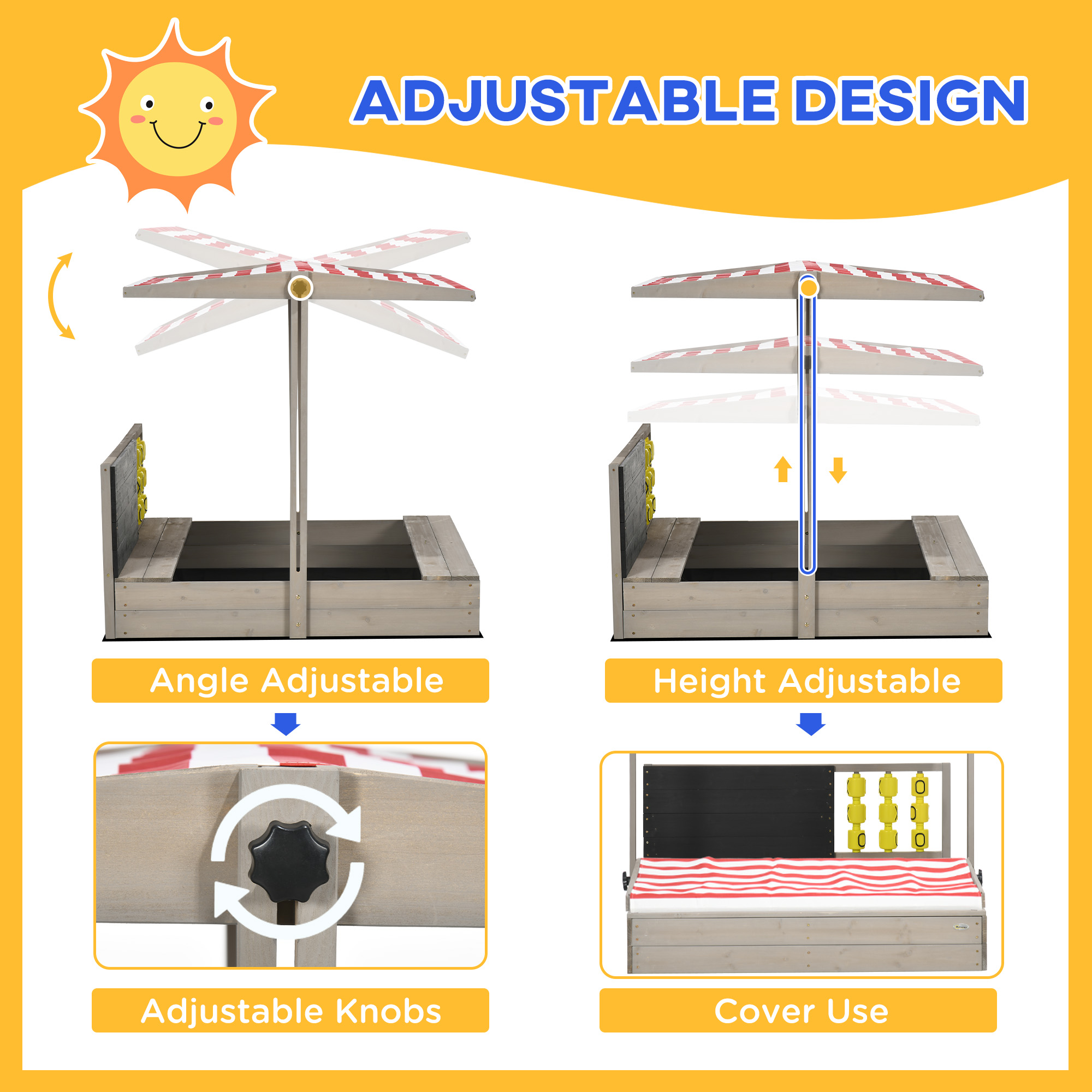 Transform your outdoor space into a mini beach, where kids will enjoy playing, digging and making sandcastles. This Outsunny kids sandbox comes with an adjustable canopy – even if it's boiling hot, kids can still play outside in the comfortable shade. It has a bottomless design with a removable liner to stop sand from getting everywhere, keeping your space clean – ideal for gardens. Large enough for two children, it comes with boardgames and a chalkboard, providing even more fun.