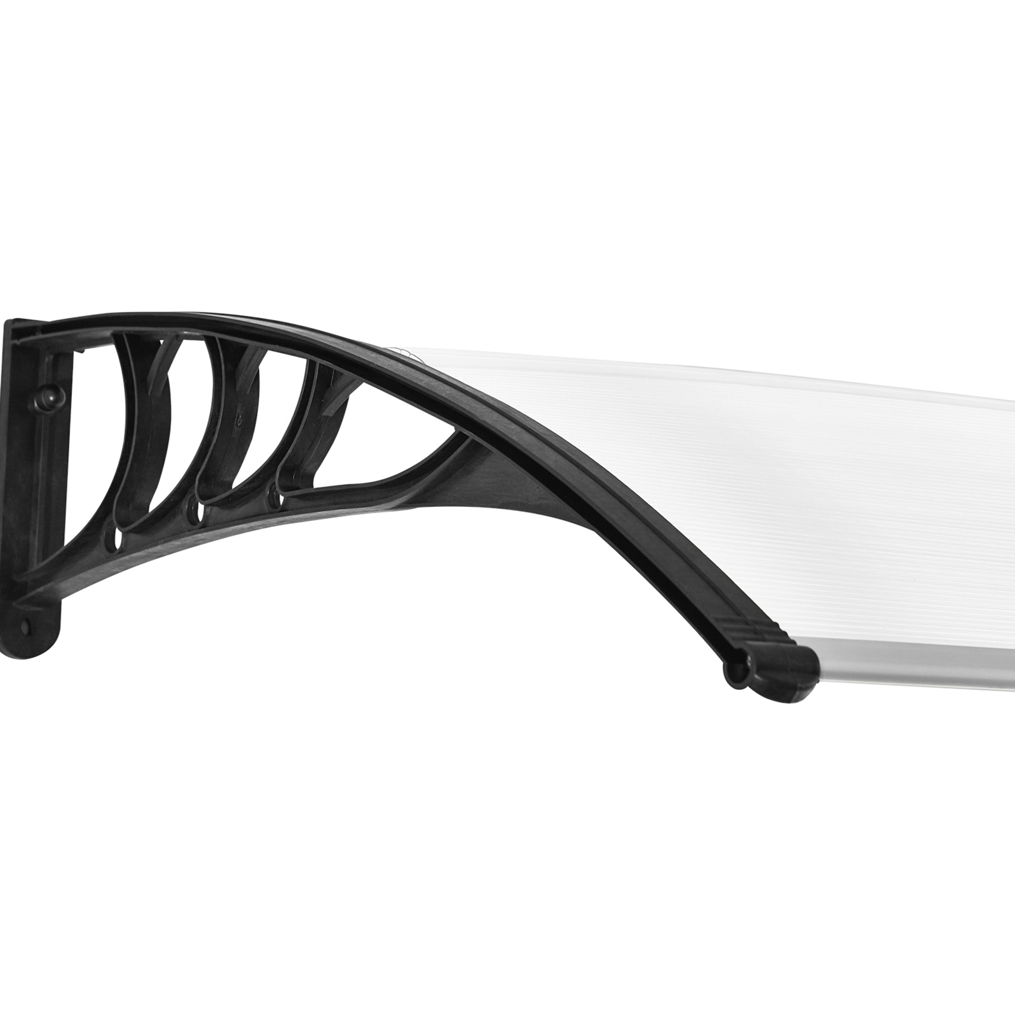 - Curved polycarbonate main panel, resistant to light-medium rain and gentle snow, placed well outside your doors and windows