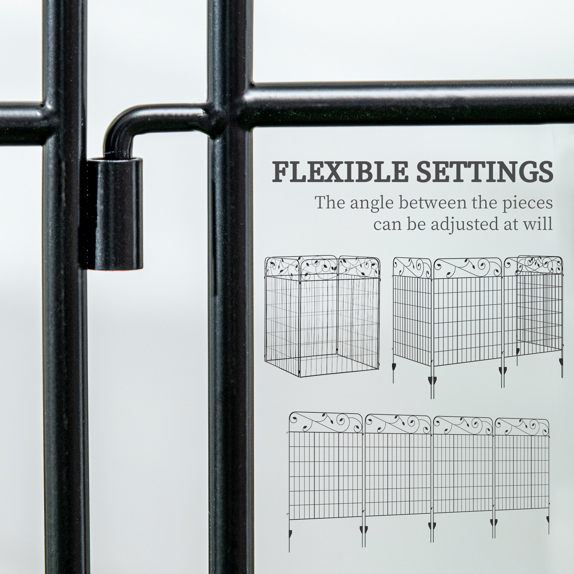 A beautiful and practical fence which can easily be shaped to suit you: this Outsunny piece is the perfect entrance to your home! 7m long, each panel can be flexed to a different position, making it great for obscure shaped areas. Made from metal for a strong structure, the powder coating offers extra protection and strength. The inner gridding and top floral swirls create a pretty look.