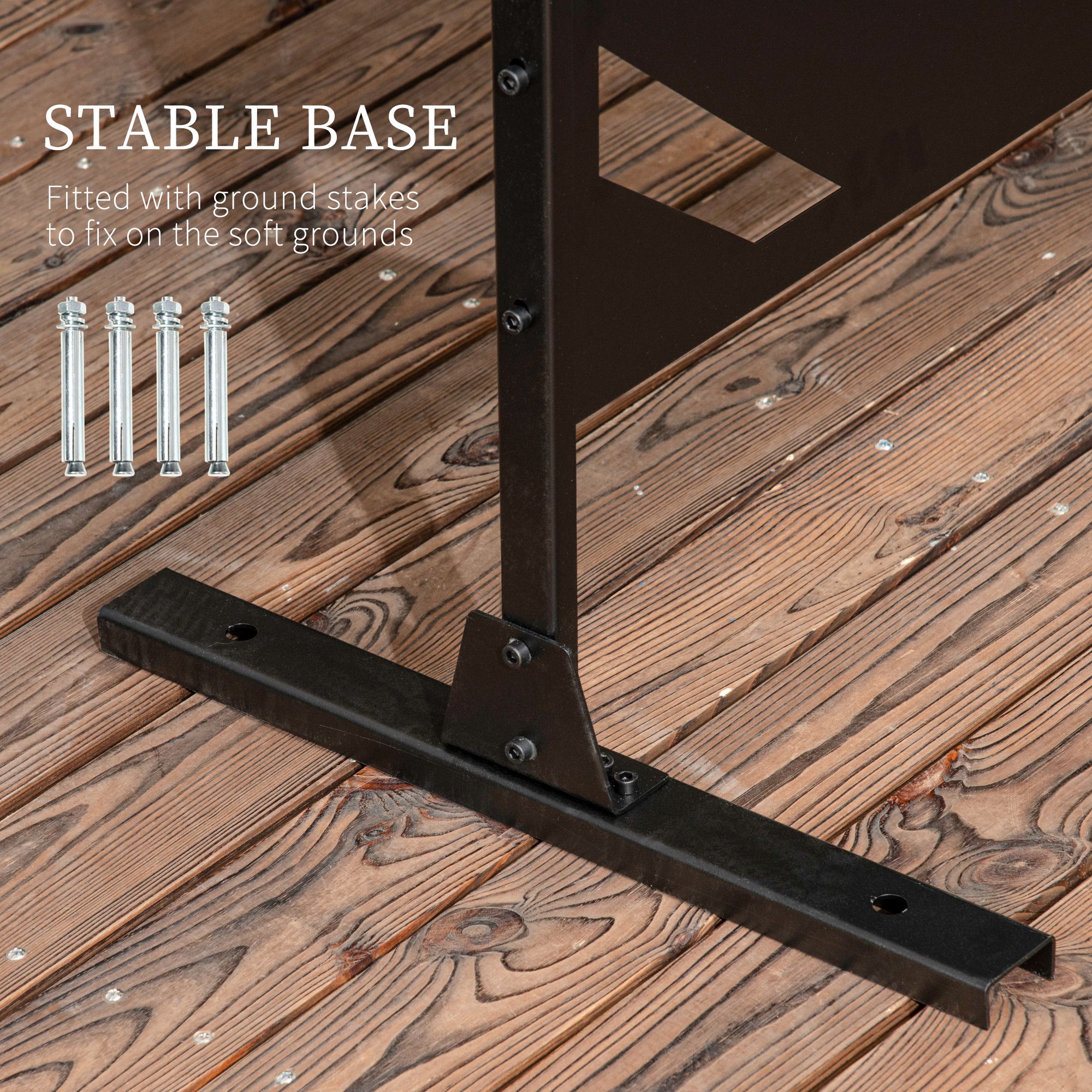 - Outdoor-ready steel frame with protective paint
