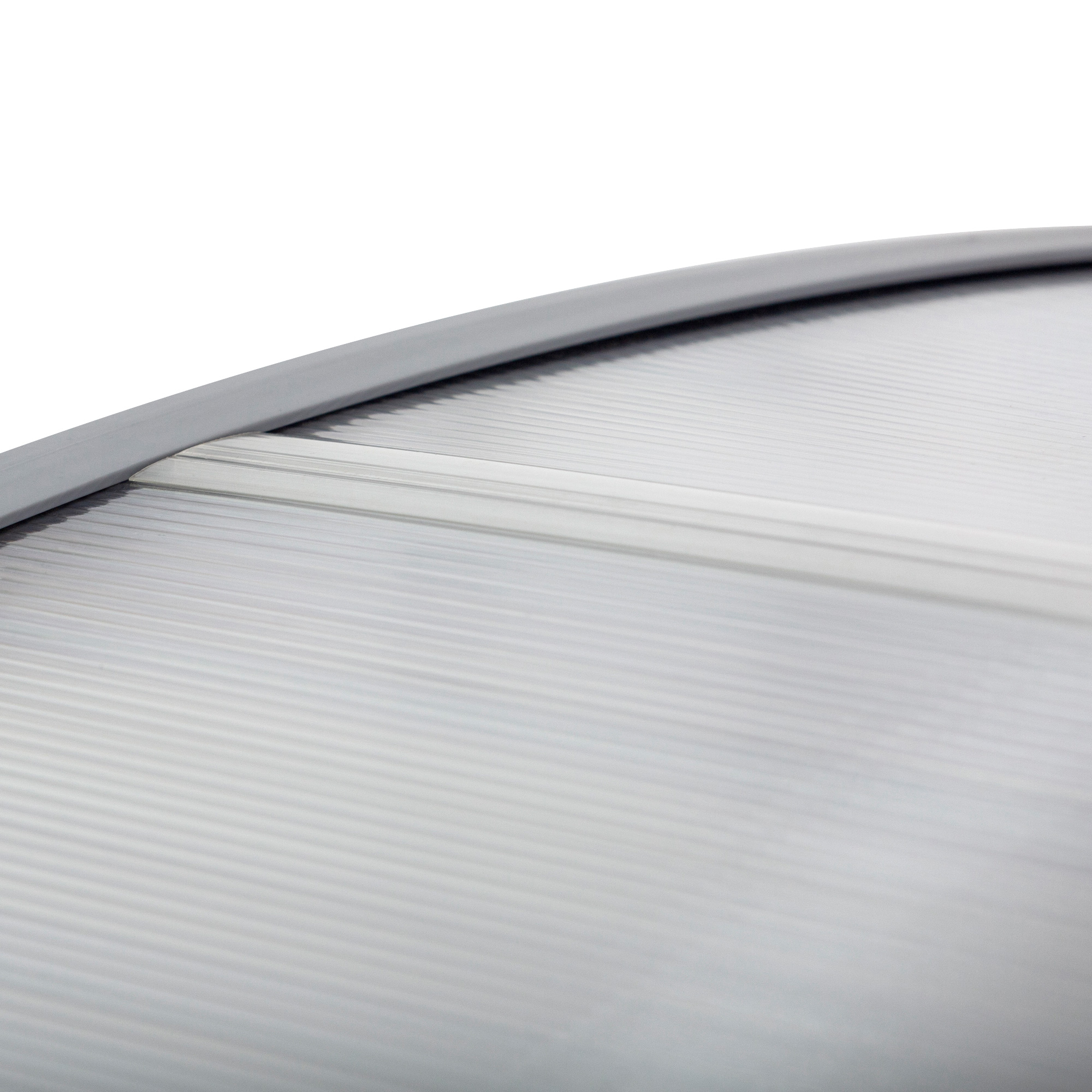 - Curved polycarbonate main panel, resistant to light-medium rain and gentle snow, placed well outside your doors and windows