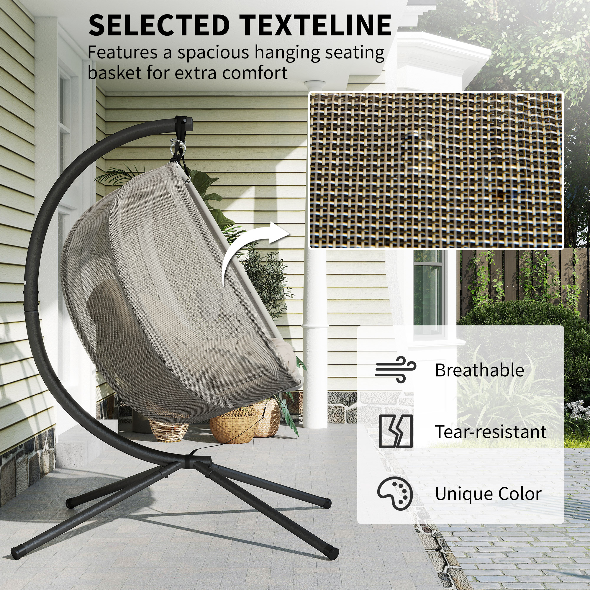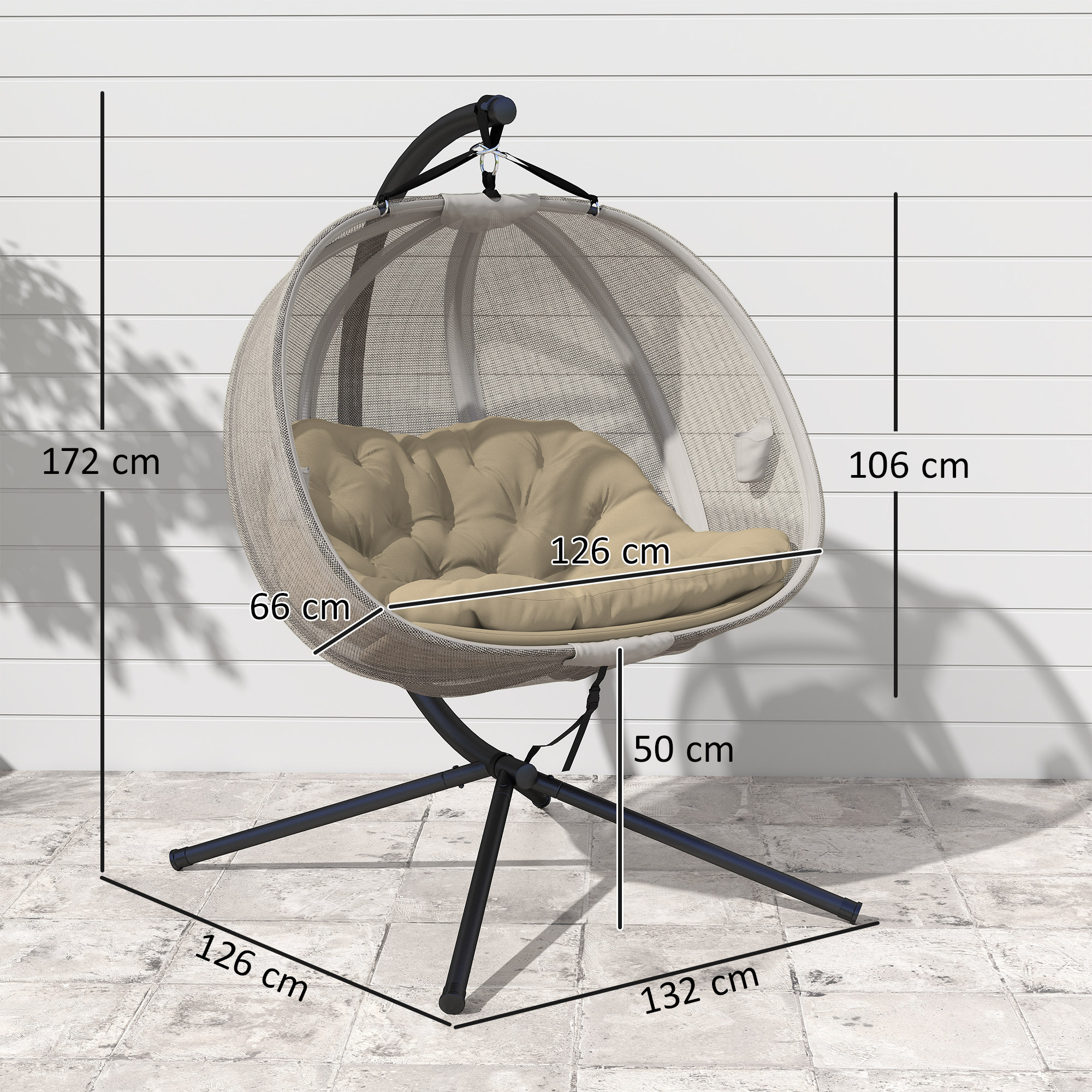 Make the most of lazy days with this double seat egg chair with stand from Outsunny. This egg hanging chair is made from breathable texteline, fitted with a removable seat basket to hold your body in place. There's a large padded cushion to keep you comfortable. Made from steel, the swinging egg chair's frame is strong and holds the sitting basket securely in place. Three long legs for balance. Easy to store, thanks to the foldable seat basket.