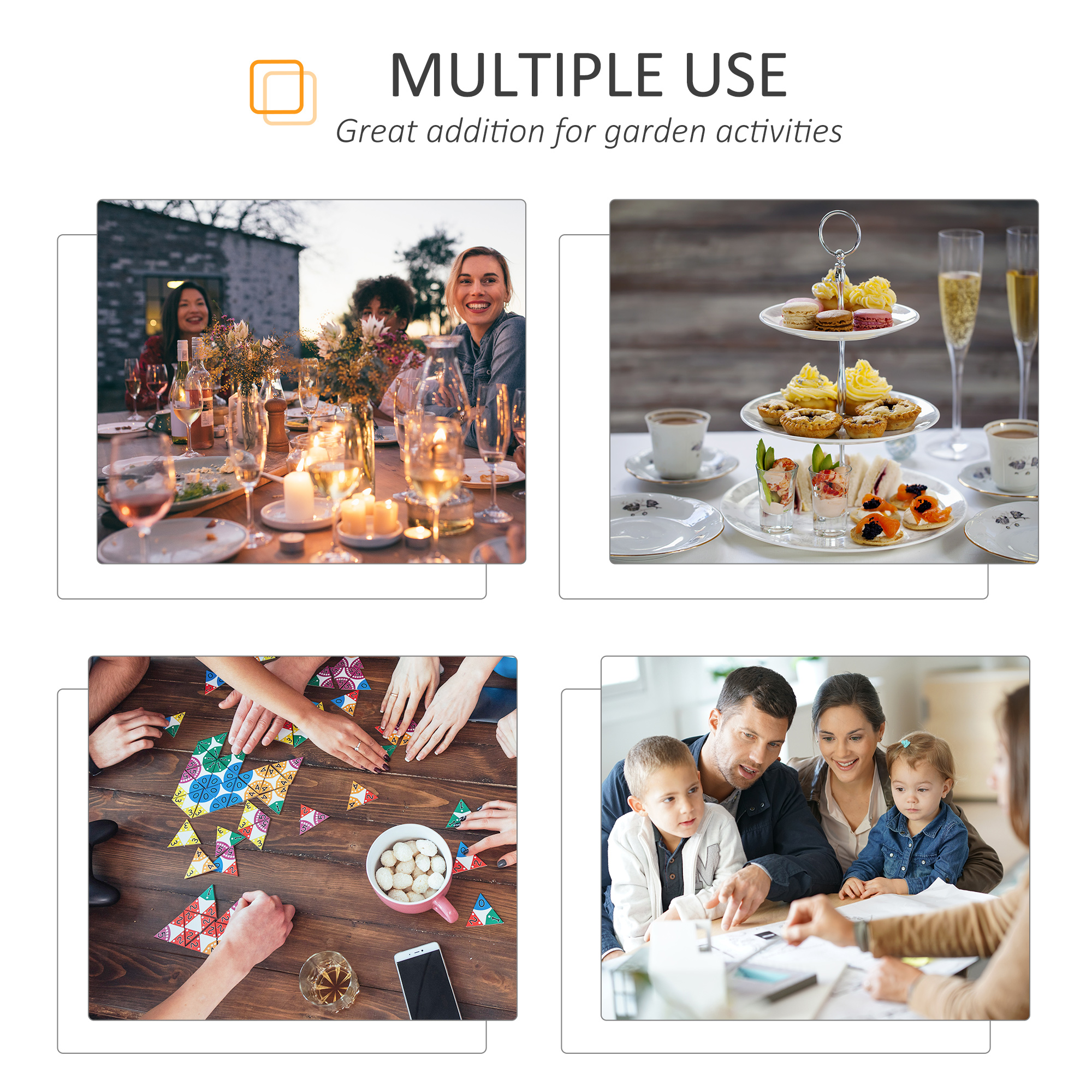 Pick a stylish addition for dining, afternoon tea and parties on patios, decks and more, with this extendable garden table from Outsunny. The powder coated aluminium frame is sturdy and durable. The tabletop extends between 135cm and 270cm - seating between eight and people: a large table great for when friends and family come over!