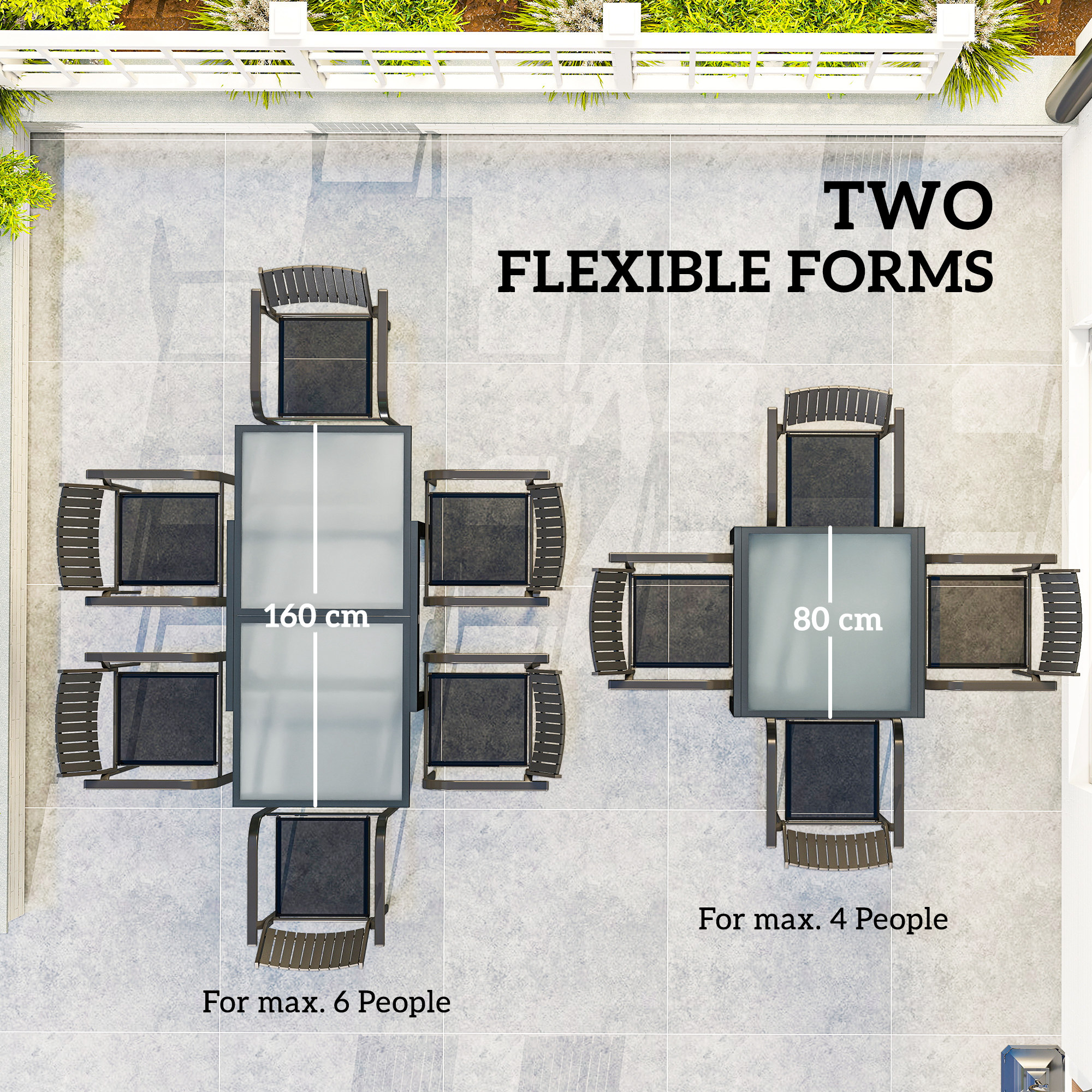 Want a place to put on barbecues and cosy campfires? Like to read in the breeze? Need a table? Outsunny has a patio dining table to help you put on the picnic of your dreams. The robust aluminium frame with quality tempered glass table top is stable and easy to maintain. Also add enduring beauty, style and grace to your area with this essential part of any outdoor living space like the balcony, garden, or deck. Put some party into your patio with Outsunny.
