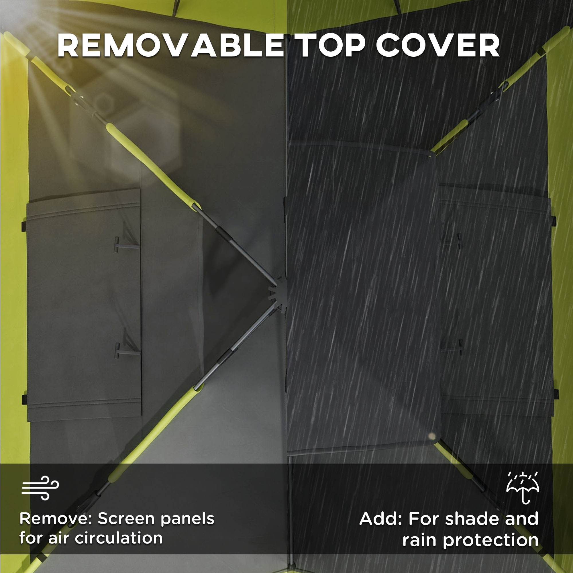 - Small removable top rainfly: 2000mm rain protection