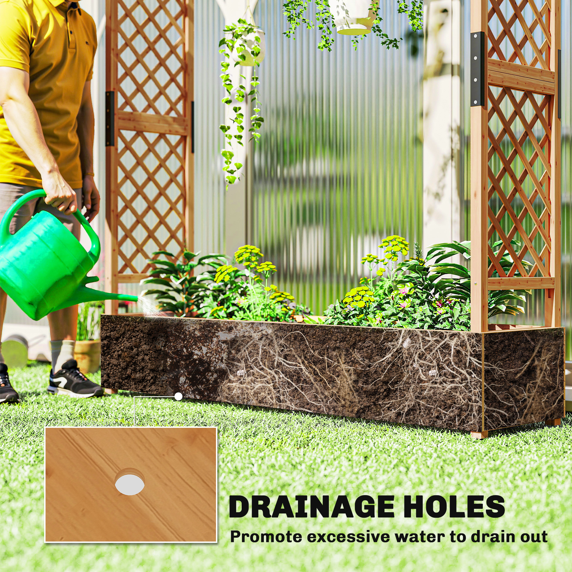 An all-in-one spot for plants and more, with this Outsunny garden bed. Made from fir wood, this is a naturally strong and beautiful piece - suitable for year-round use. It's formed of a 171 x 39 cm garden bed for growing plants, flowers, fruits and more; two side trellises for climbing plants, plus upper rails for hanging baskets. Complete with four holes on the bottom for easy and effective water drainage.