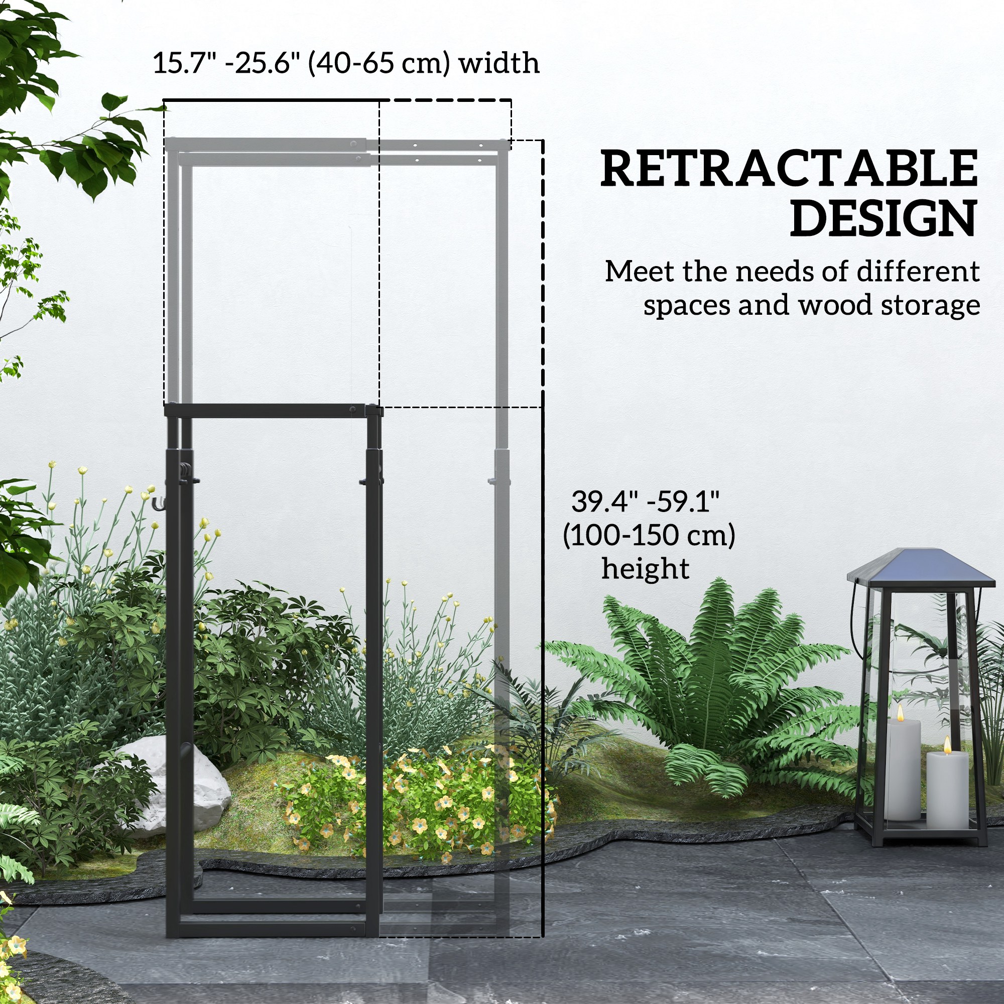 Keep firewood tidy and aerated with this Outsunny log holder. Expand this indoor and outdoor log storage rack 40-65cm in width and 100-150cm in height, catering for different loads of wood. The powder coated steel structure is strong and keeps in shape. The two racks also come with eight handy hooks to keep tools within reach.