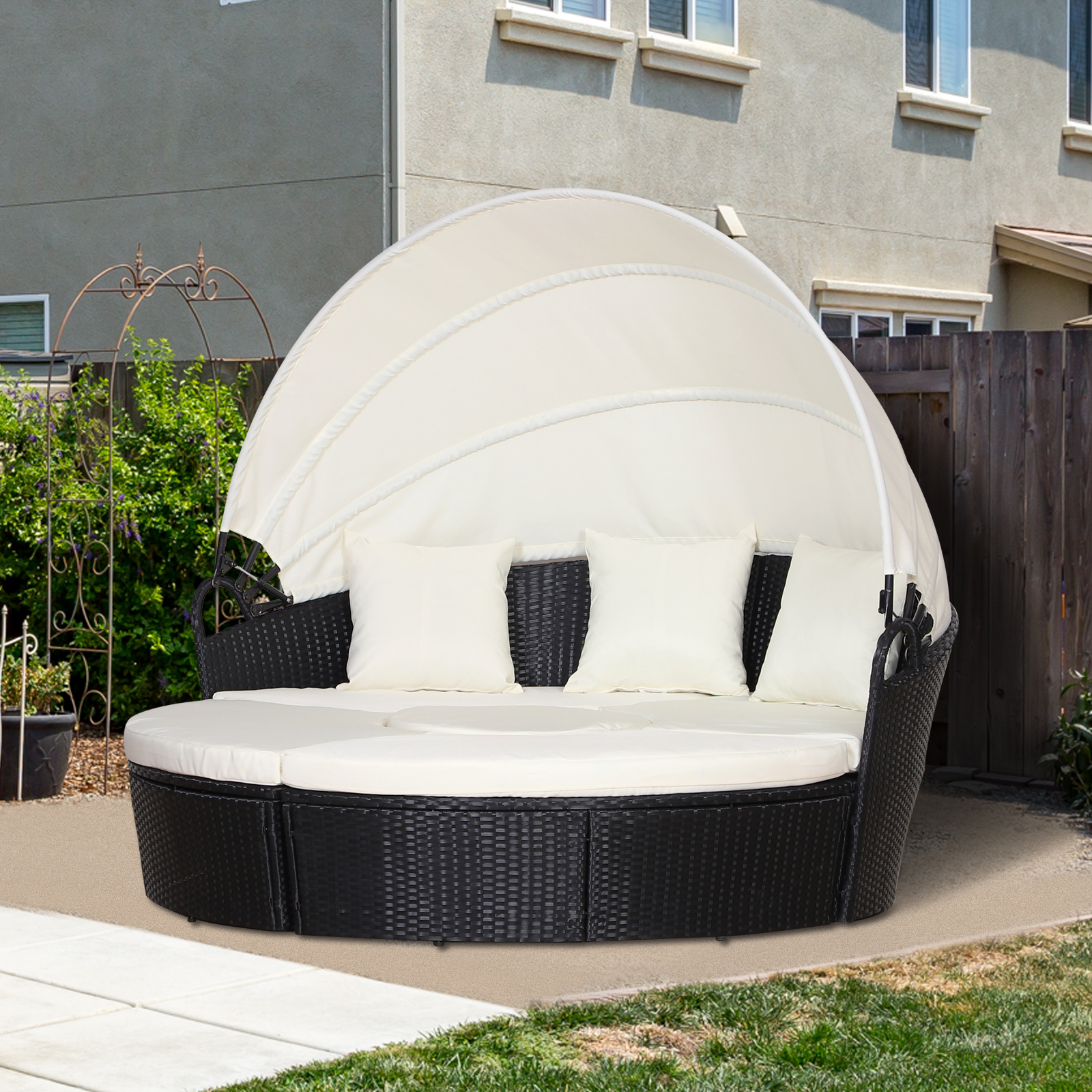 - Retractable overhead canopy, will block out sun and rain to allow you to rest peacefully