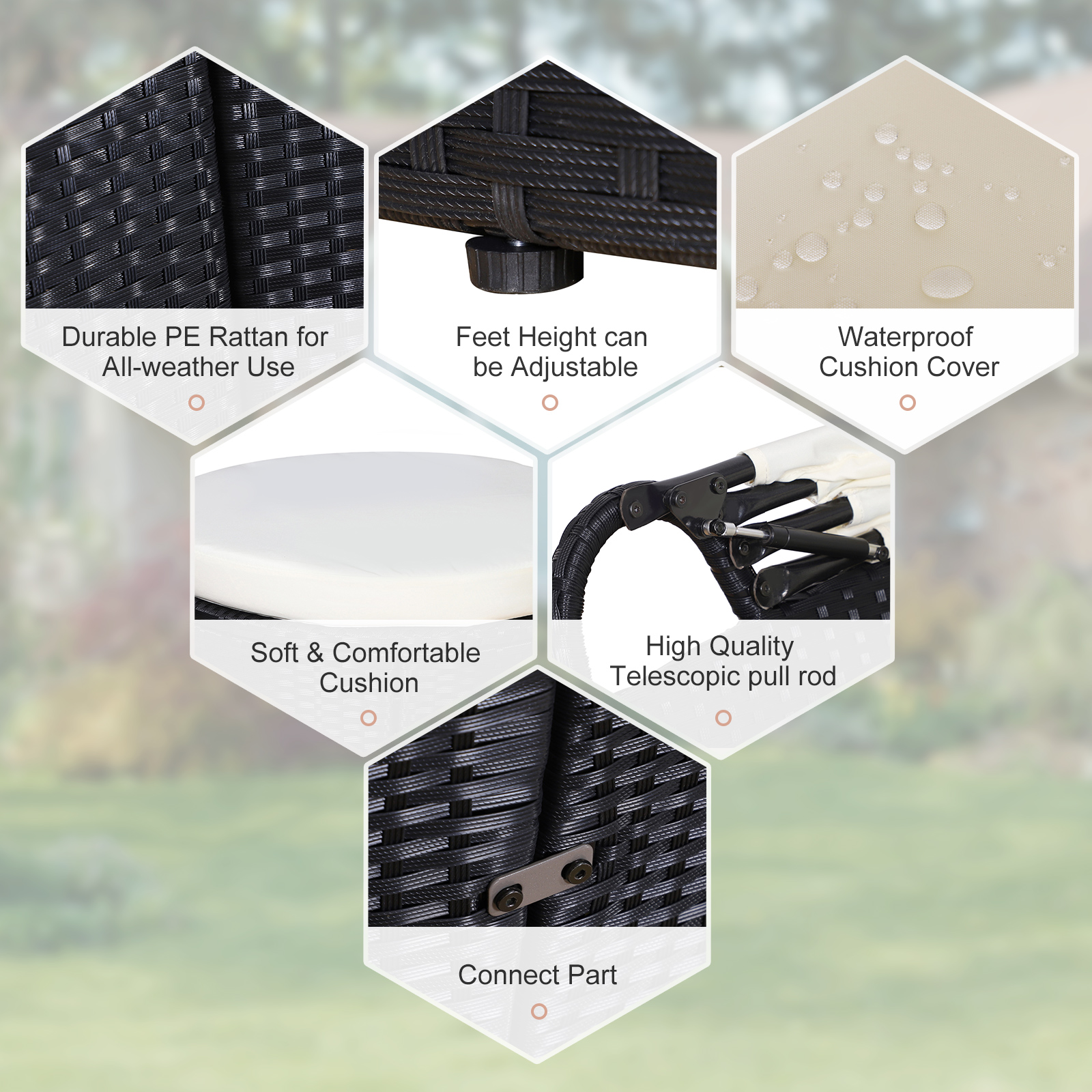 - Material: PE rattan, Metal, Polyester, Vertical cotton