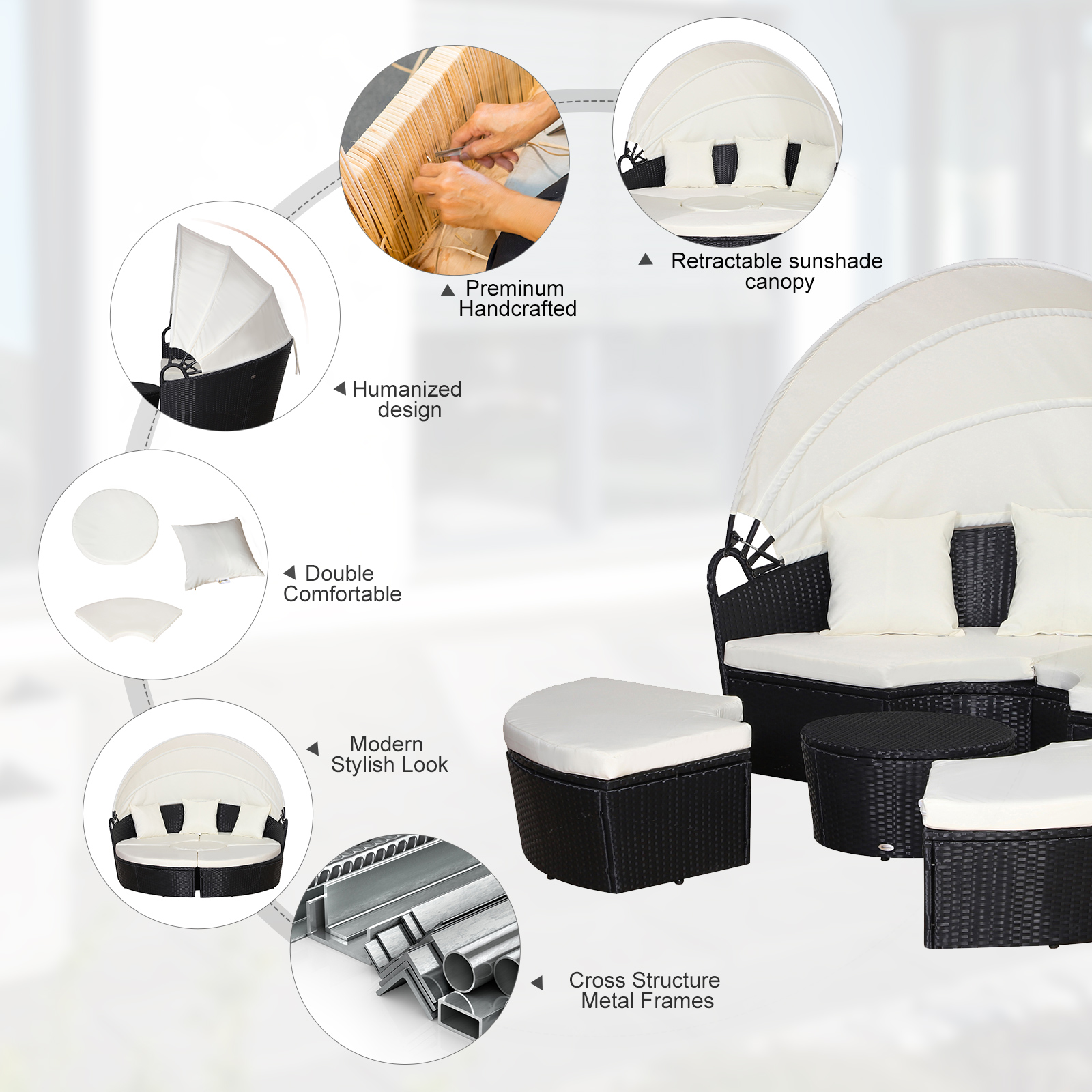 - Metal under-frame for a sturdy structure, with PE rattan wrapped around: double the strength and resilience against weathering and damage