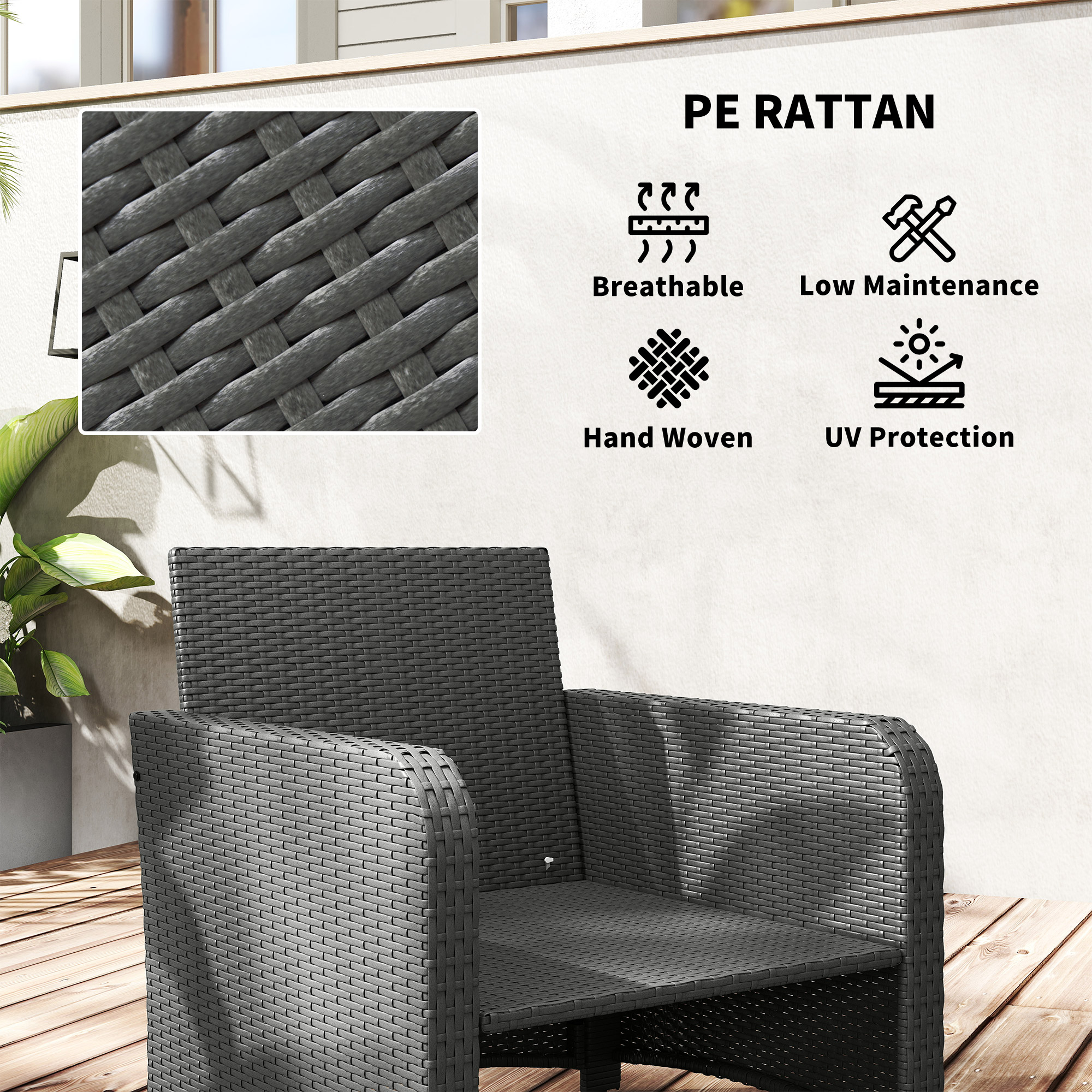 - PE rattan is UV-resistant and anti-fading for reliable outdoor use