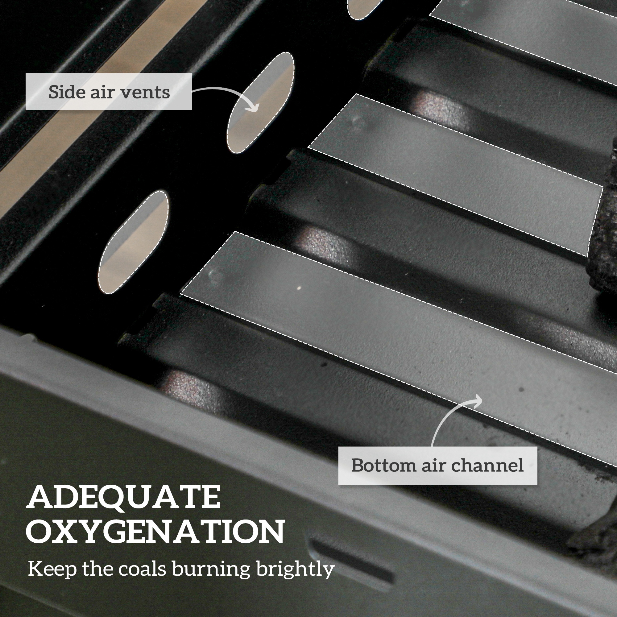 - Air channels and vents ensure efficient oxygen flow