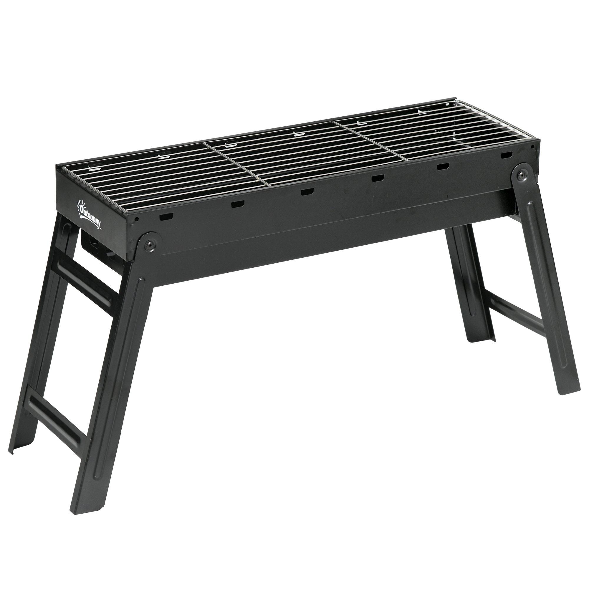 Outdoor cooking, anywhere, with this Outsunny portable grill. Its foldable legs make it easy to carry around with you - a compact piece you can take to camping, hiking, festival trips and more. The pull-out charcoal basin makes it easy to clean - takes little time. simplifies cleaning, while air channels and vents ensure your barbecue gets the oxygen it needs. All wrapped up in a sleek, galvanised metal design with a powder-coated finish for a touch of style.