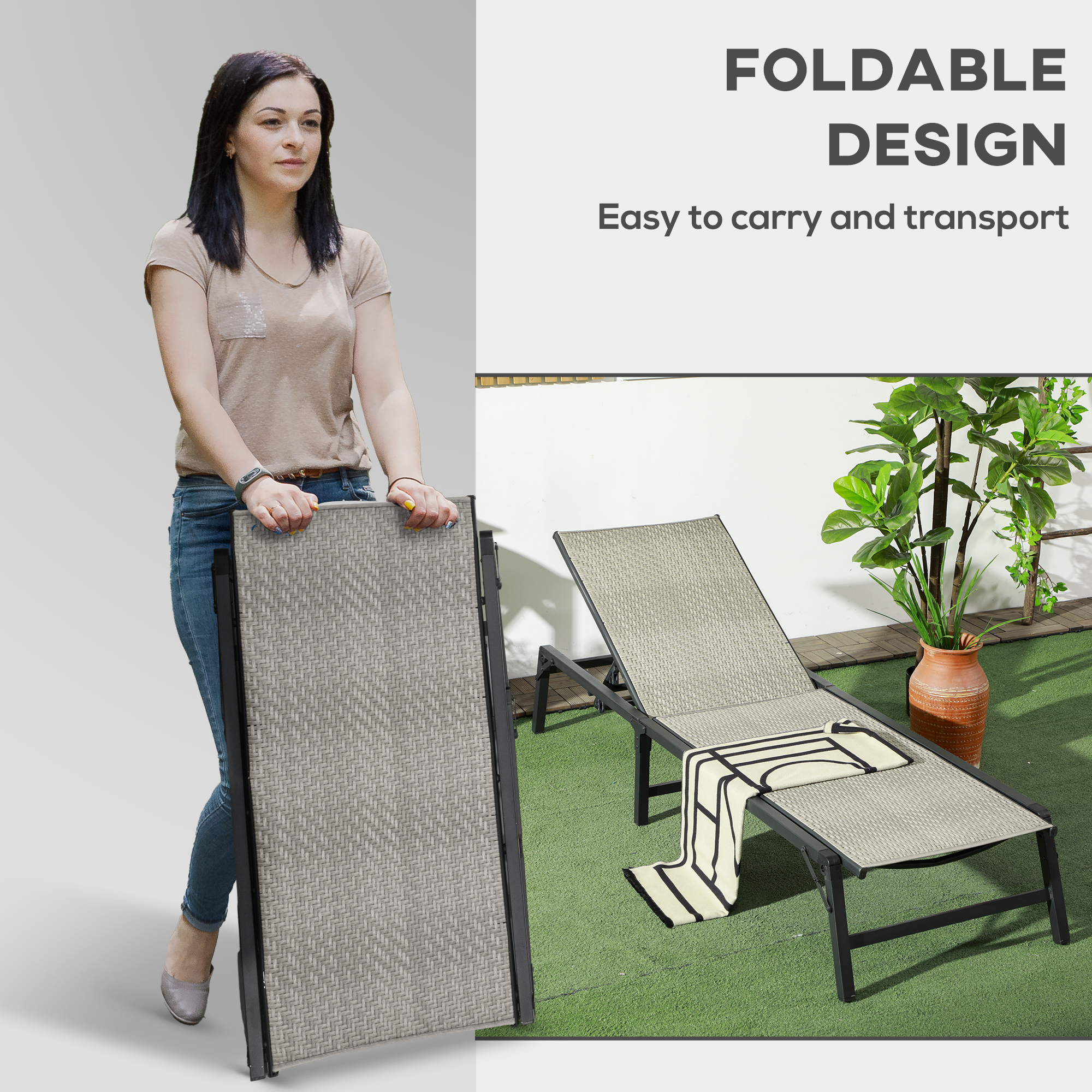 This Outsunny lounger features a five-level adjustable backrest: find a position most comfortable for you.. Its foldable design makes it easy to store away when needed. Outdoor relaxation, your way.