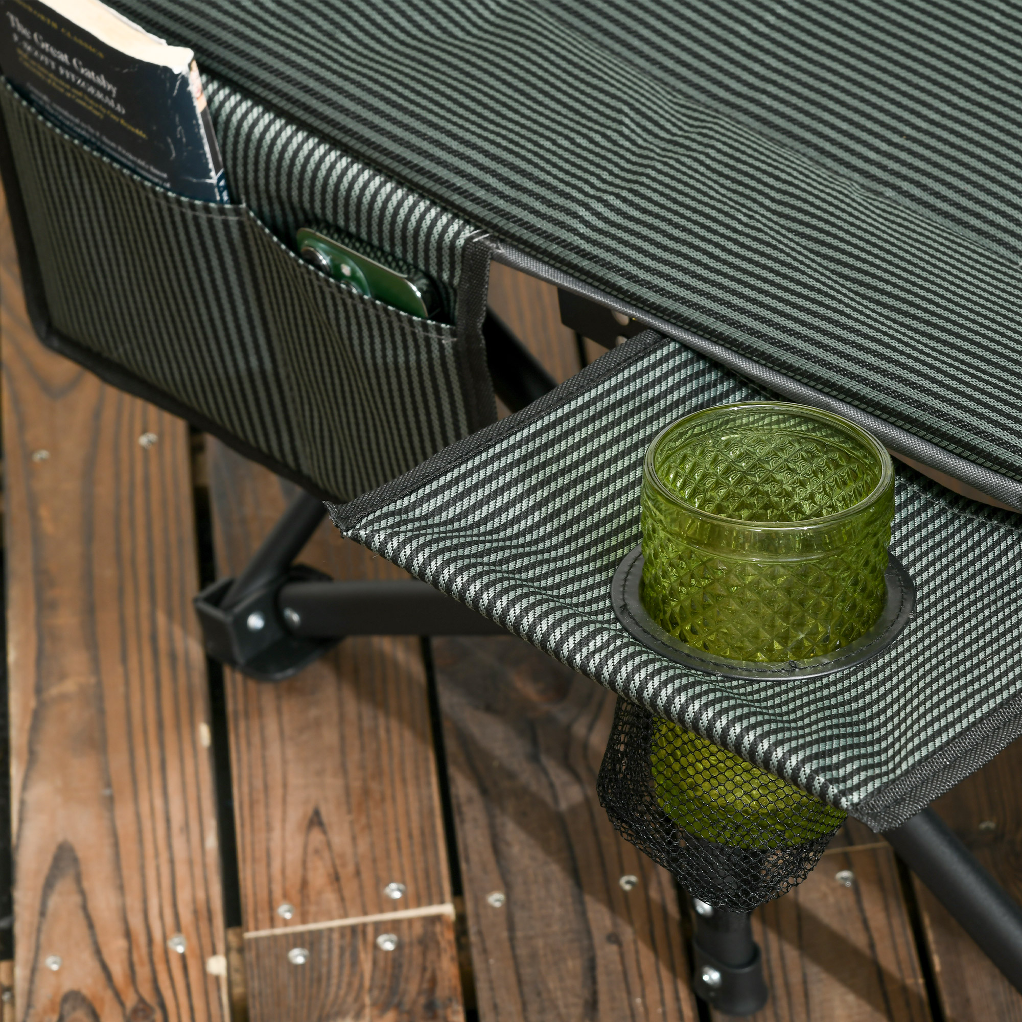The Outsunny single camp bed is a comfortable and stylish addition to your leisure time. The patio camping bed is foldable and comes with a carry bag, making it portable and lightweight enough to carry like a suitcase on a trip, camping or on the beach. Soft padded filling provides extra comfort for your outdoor life. Side with a magazine bag and cup holder allows easy access to drinks, magazines, phones. Check out this camping travel cot and start relaxing right away.