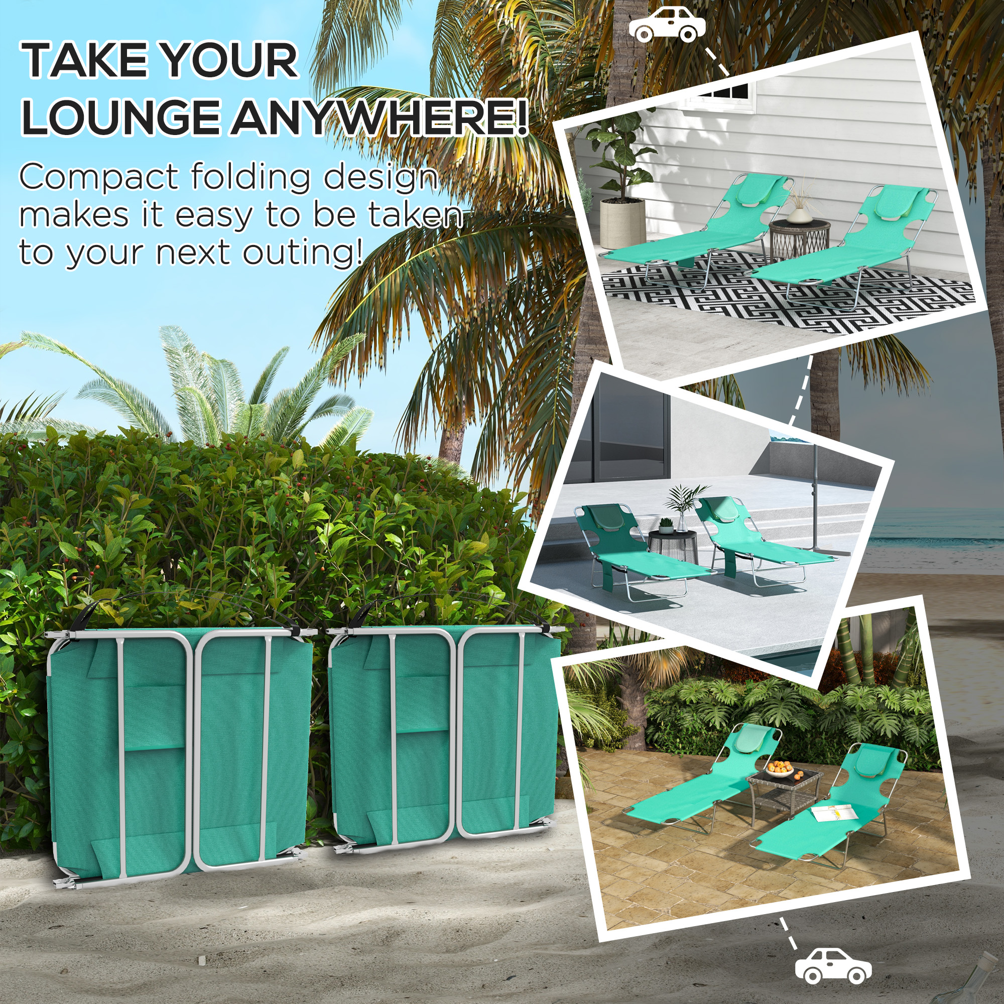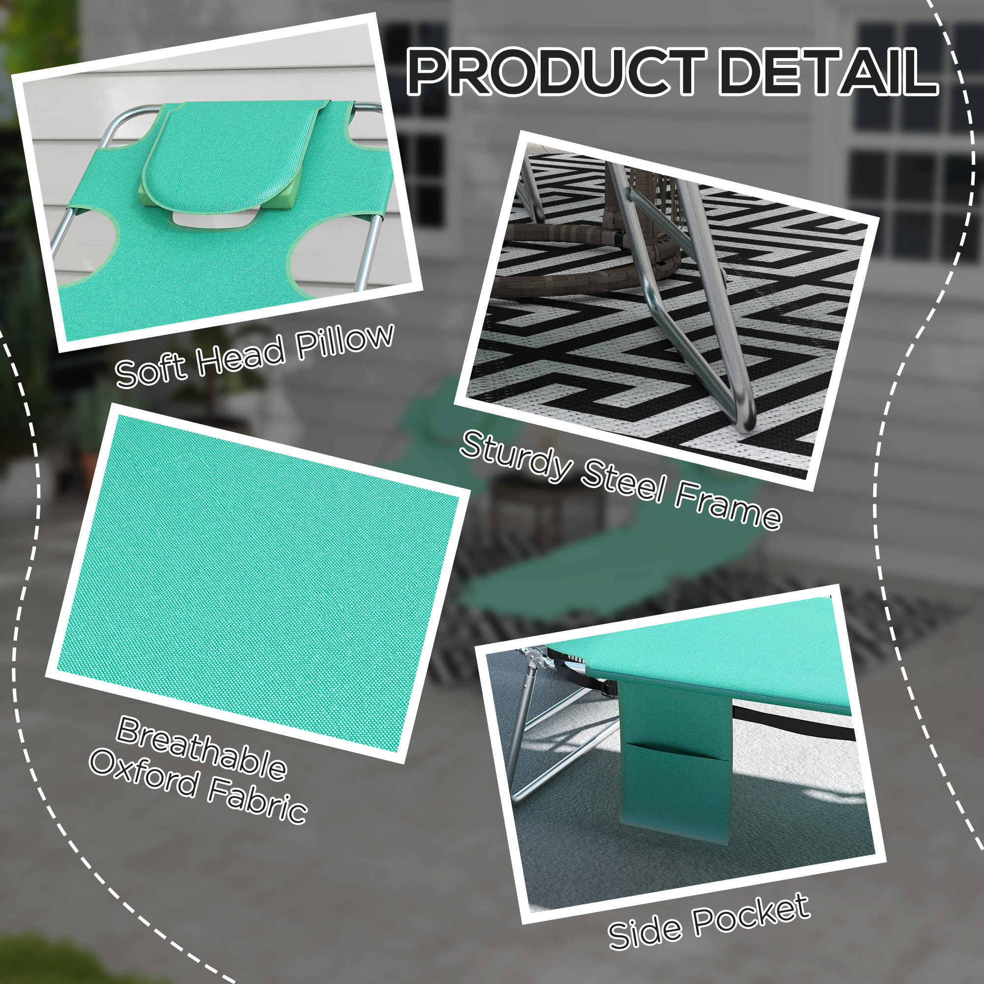 A cool update on the classic sun lounger - this go for this massage-style garden chair set from Outsunny. The design features a padded head hole at the front, which allows you to comfortably rest your face in: perfect for when relaxing on your front - or even reading a book! The metal frame, powder coated for extra strength, supports up to 120kg. The back is adjustable to five positions - it's easy to set and lock to a position you like best. Complete with a handy side pocket.