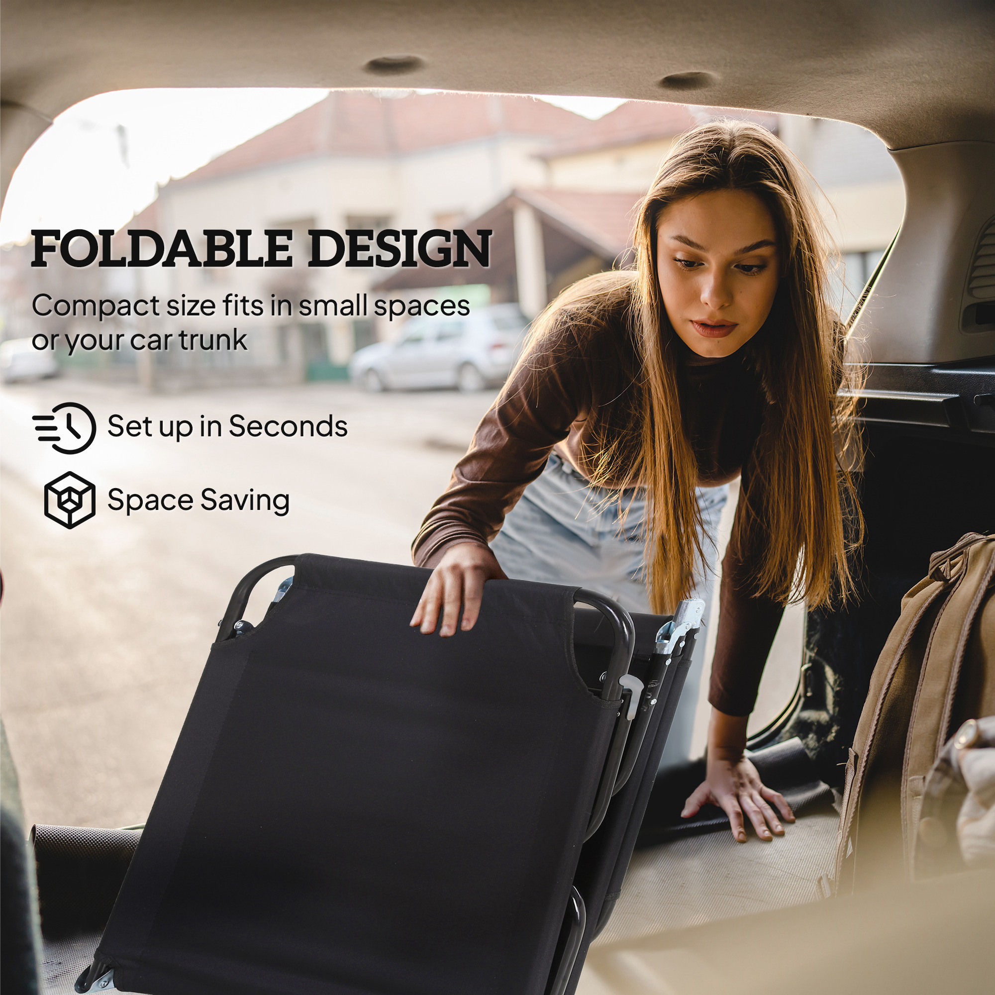 Our Outsunny folding sun lounger is strong, comfortable and will support you all afternoon long. Reinforced metal frames keep you supported - fabric seats are fitted to keep you comfortable. Three long legs keep the lounger balanced. The back can be set to five different positions - choose a position you prefer.