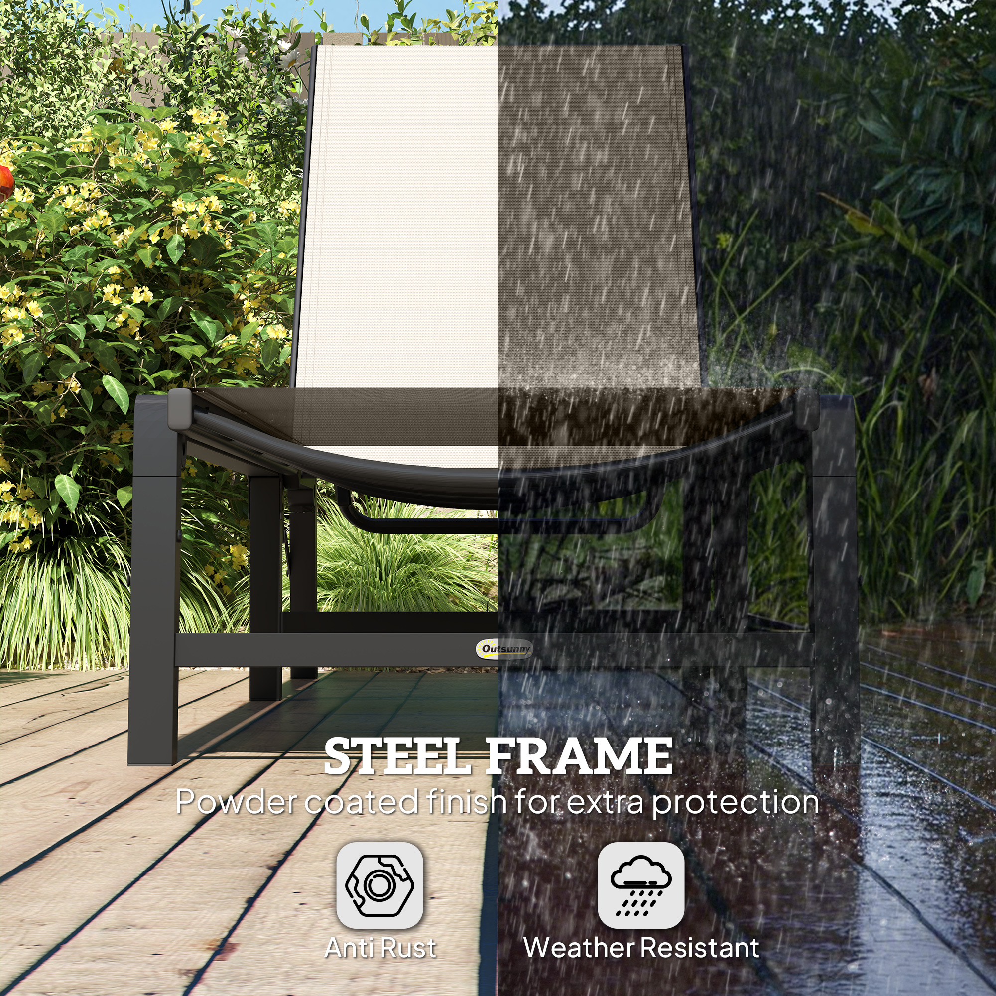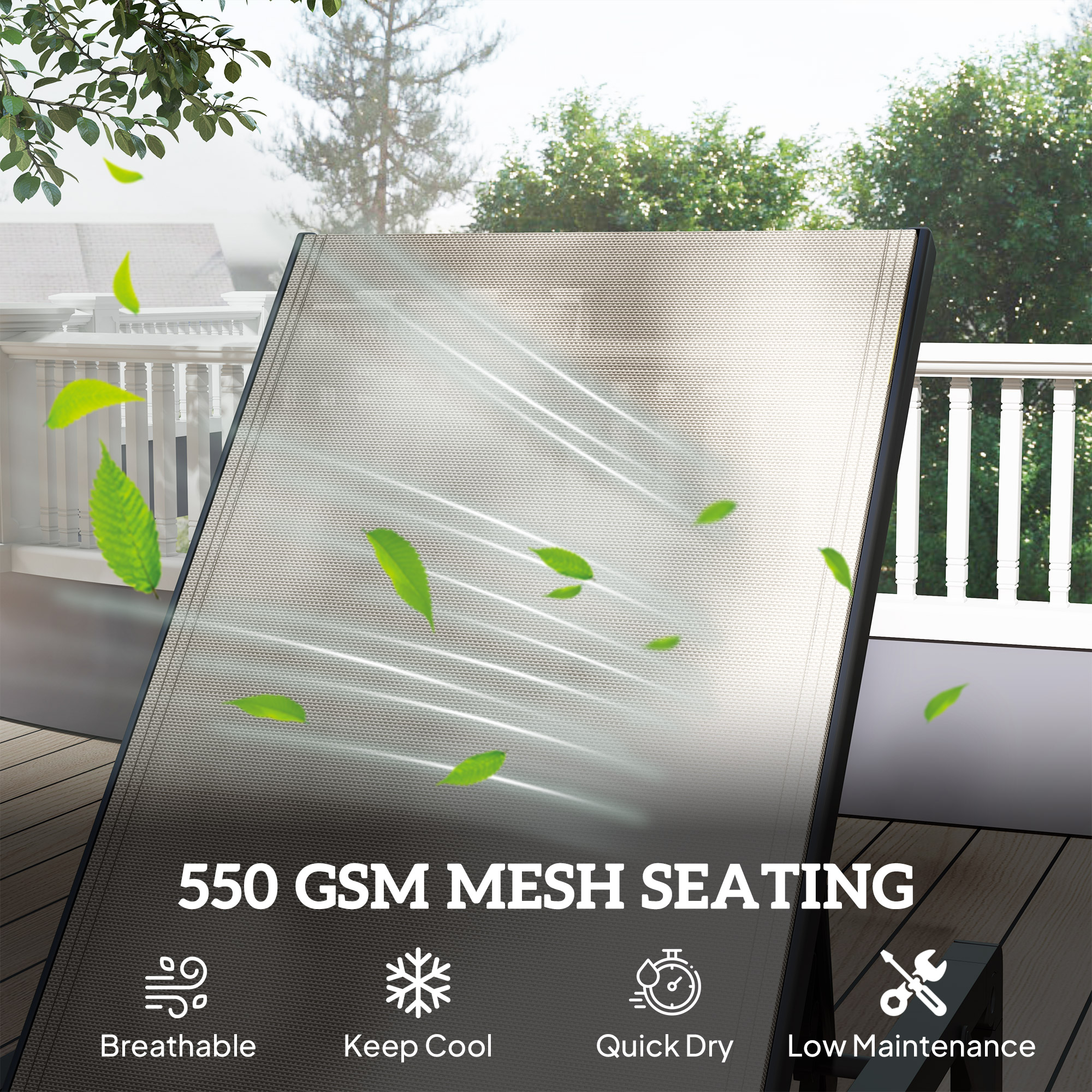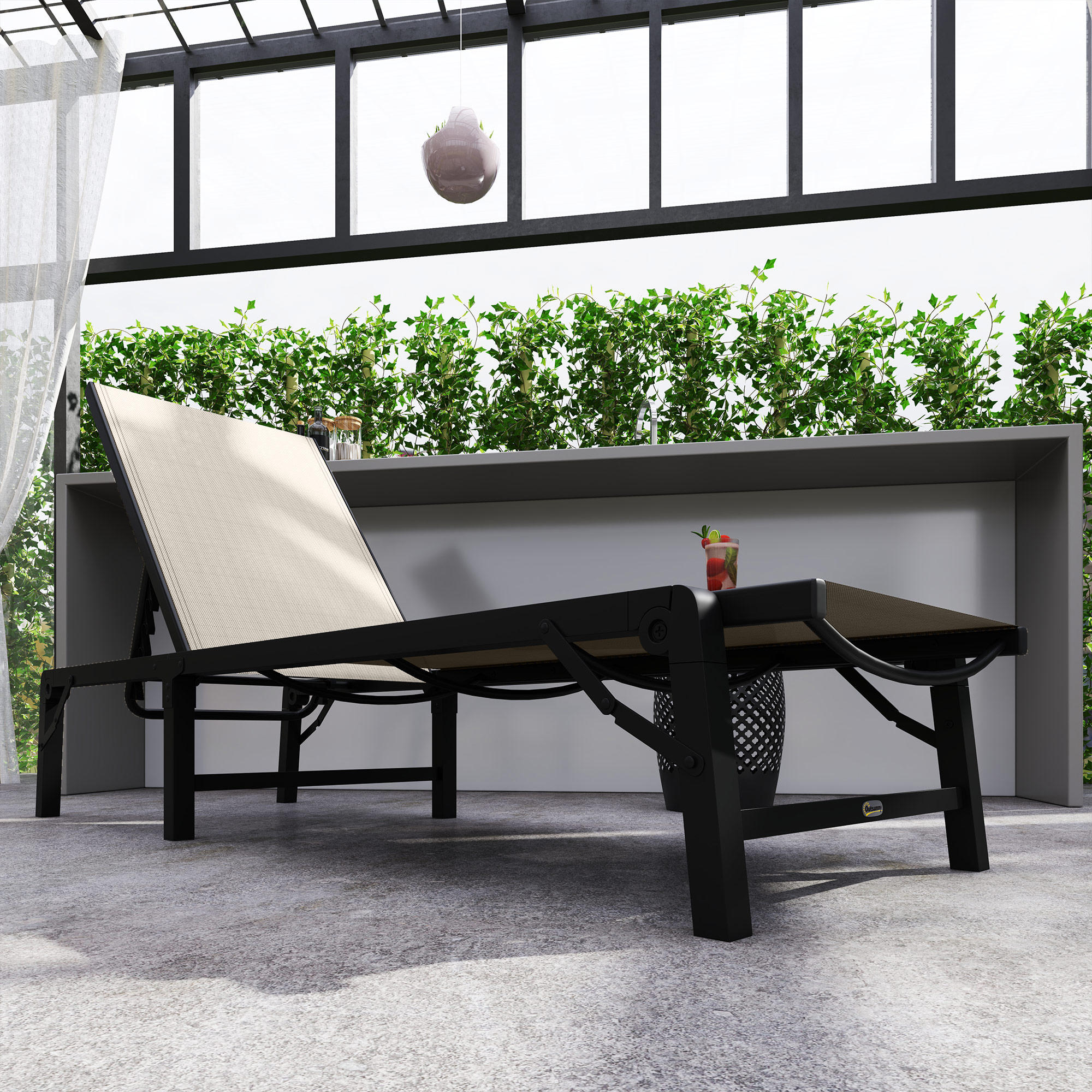 Relax and soak up the sun in style with the Outsunny Reclining Sun Lounger! Adjust the backrest through five levels, up to a flat 180 degrees, ensuring peak relaxation. Crafted from breathable, quick-drying Texteline mesh, this garden recliner keeps you cool and dry no matter the weather. Plus, its lightweight design makes it a breeze to move and store, enhancing any outdoor lounge area.