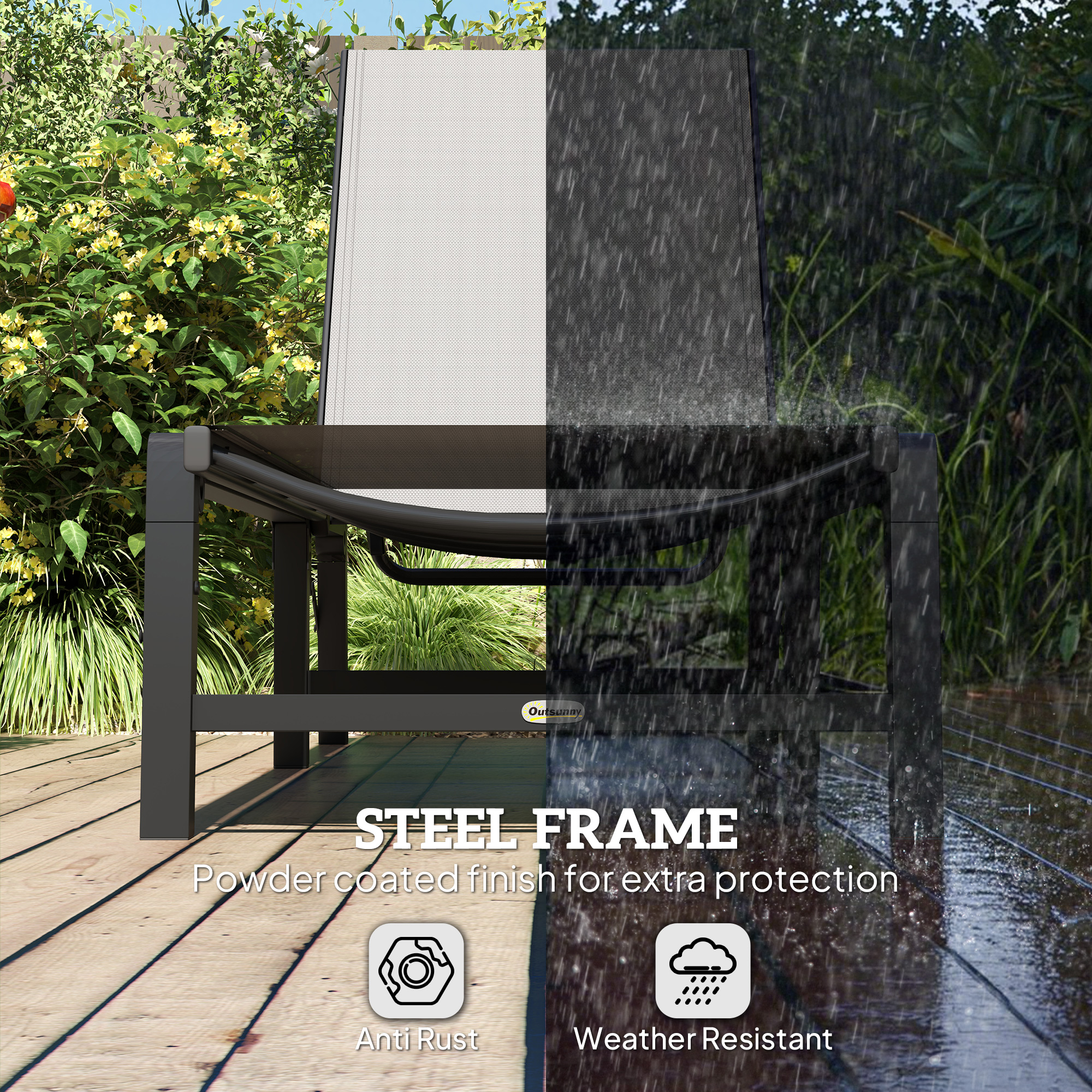 Relax and soak up the sun in style with the Outsunny Reclining Sun Lounger! Adjust the backrest through five levels, up to a flat 180 degrees, ensuring peak relaxation. Crafted from breathable, quick-drying Texteline mesh, this garden recliner keeps you cool and dry no matter the weather. Plus, its lightweight design makes it a breeze to move and store, enhancing any outdoor lounge area.