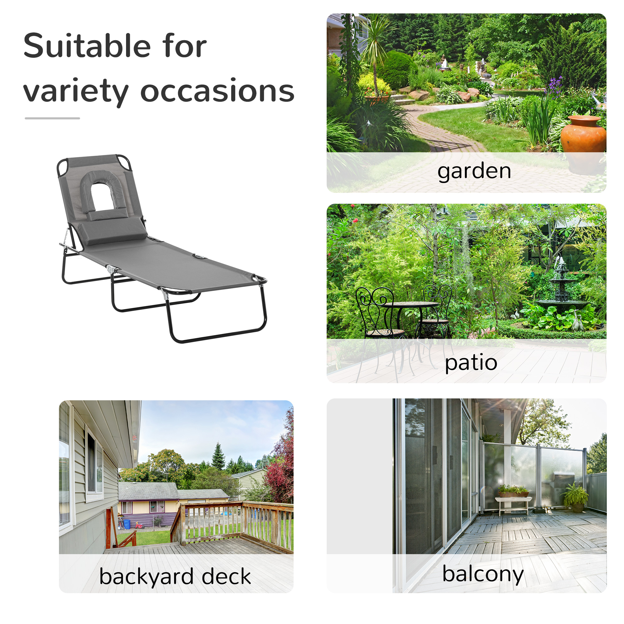 A cool update on the classic sun lounger - go for this massage-style garden chair from Outsunny. The design features a padded head hole at the front, which allows you to comfortably rest your face in: perfect for when relaxing on your front! The metal frame supports up to 120kg. The back is adjustable to four positions - it's easy to set and lock to a position you like best. So just sit back and relax.