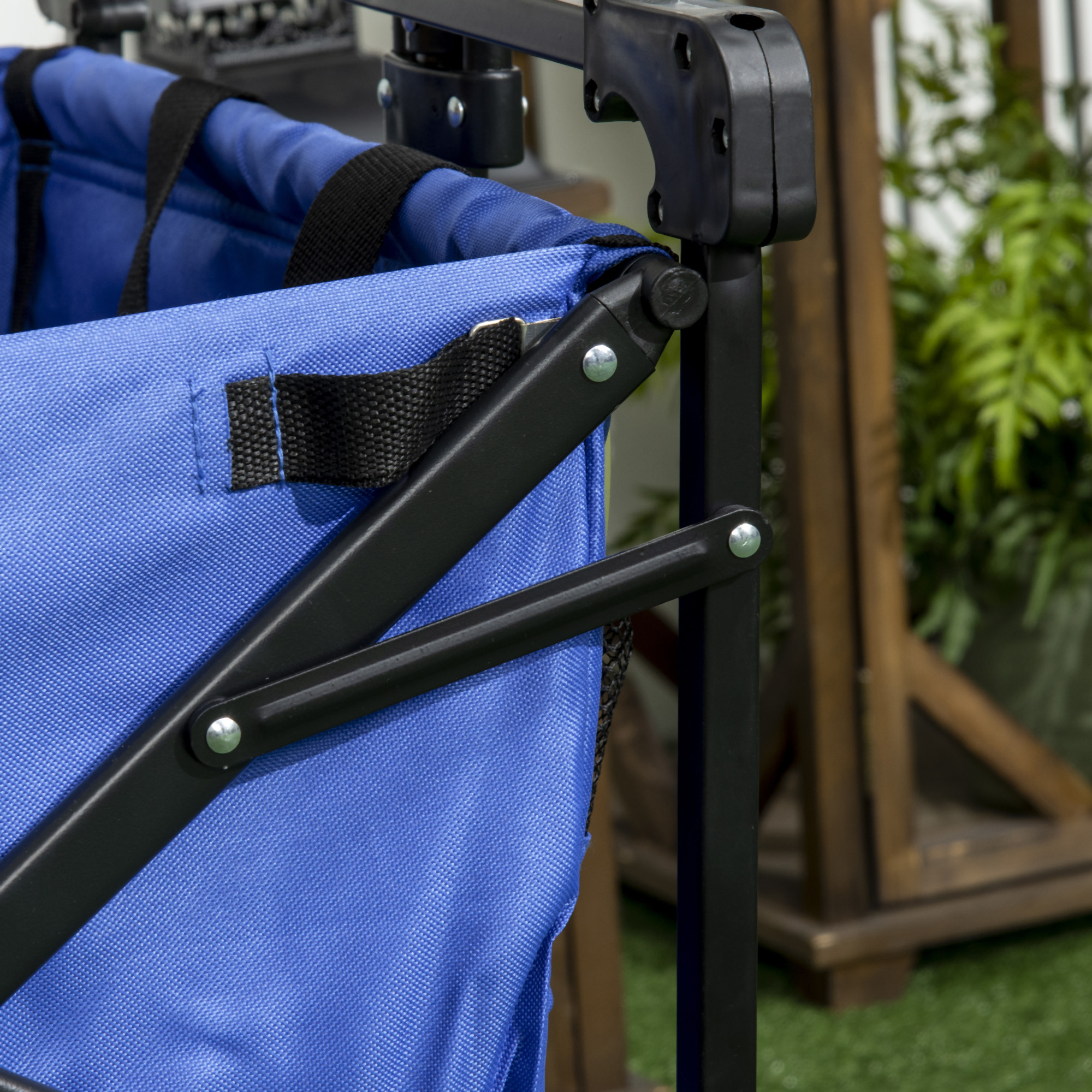 Take the effort out of moving food, bottles, boxes, and everything else in-between with this pull along trolley from Outsunny. A spacious design, it incorporates a large main cart to allow you to move lots of stuff, with a side outer pocket for quick and easy access to anything on the go. Foldable in design for compact storage when not in use, this trolley on wheels is finished with a telescopic pull handle and cup holder. Perfect for visits to the shops, camping trips and festivals.