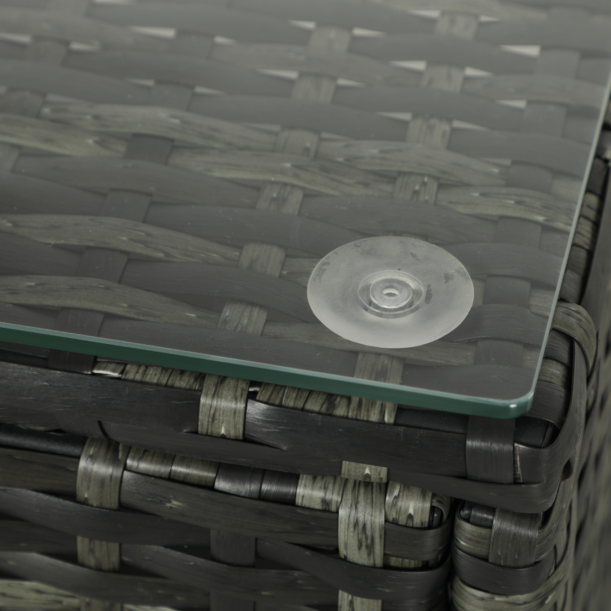 - Material: Steel, PE rattan, Polyester, Tempered glass