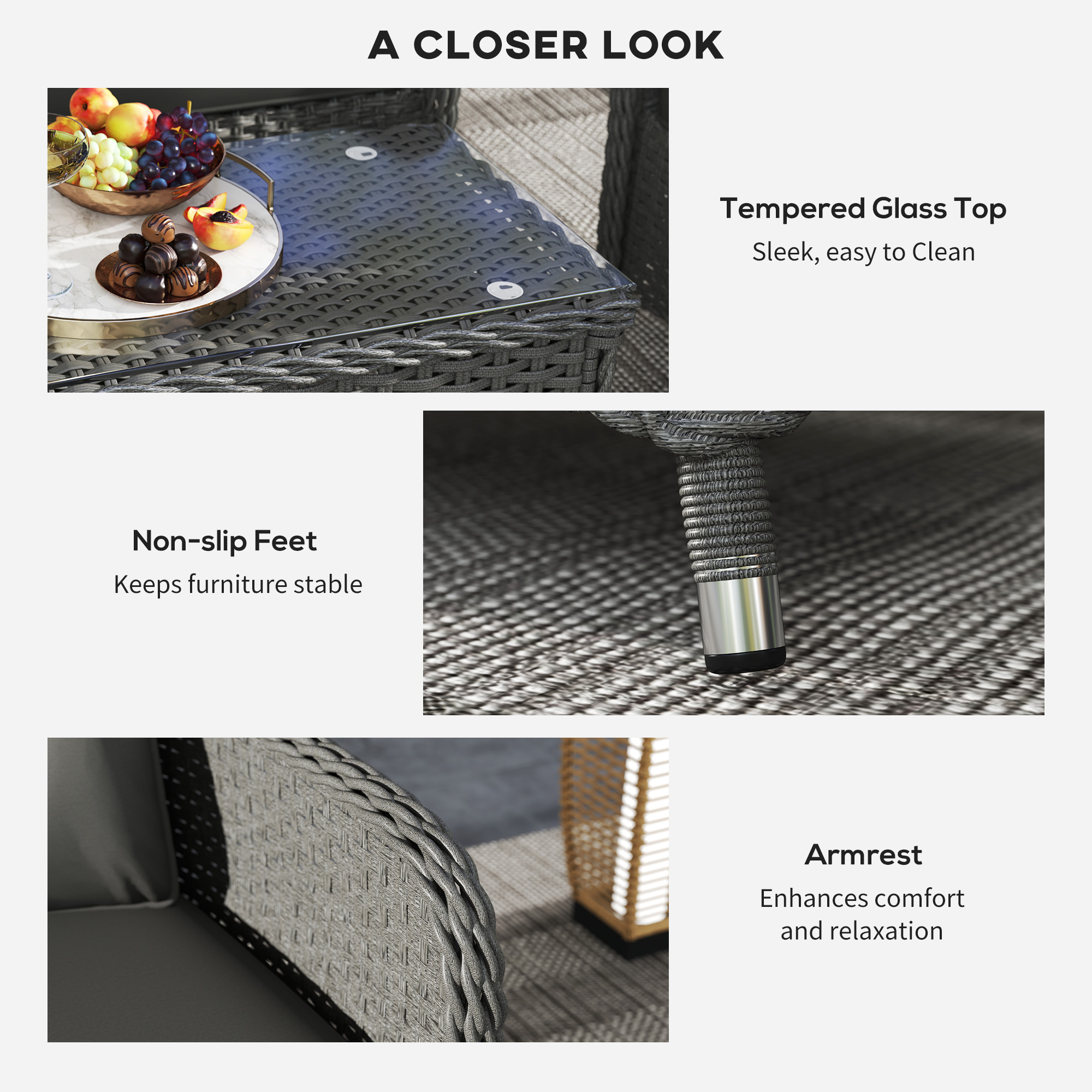 Bring the whole family together outdoors this summer, thanks to this Outsunny rattan sofa set. It comes with two chairs, a double sofa and table. The frames of the garden furniture sets are made from tough and durable aluminium, wrapped in weather and fade resistant rattan for double the protection and durability. Finished with seat and back cushions on each piece - you'll find it hard to get out once settled in!