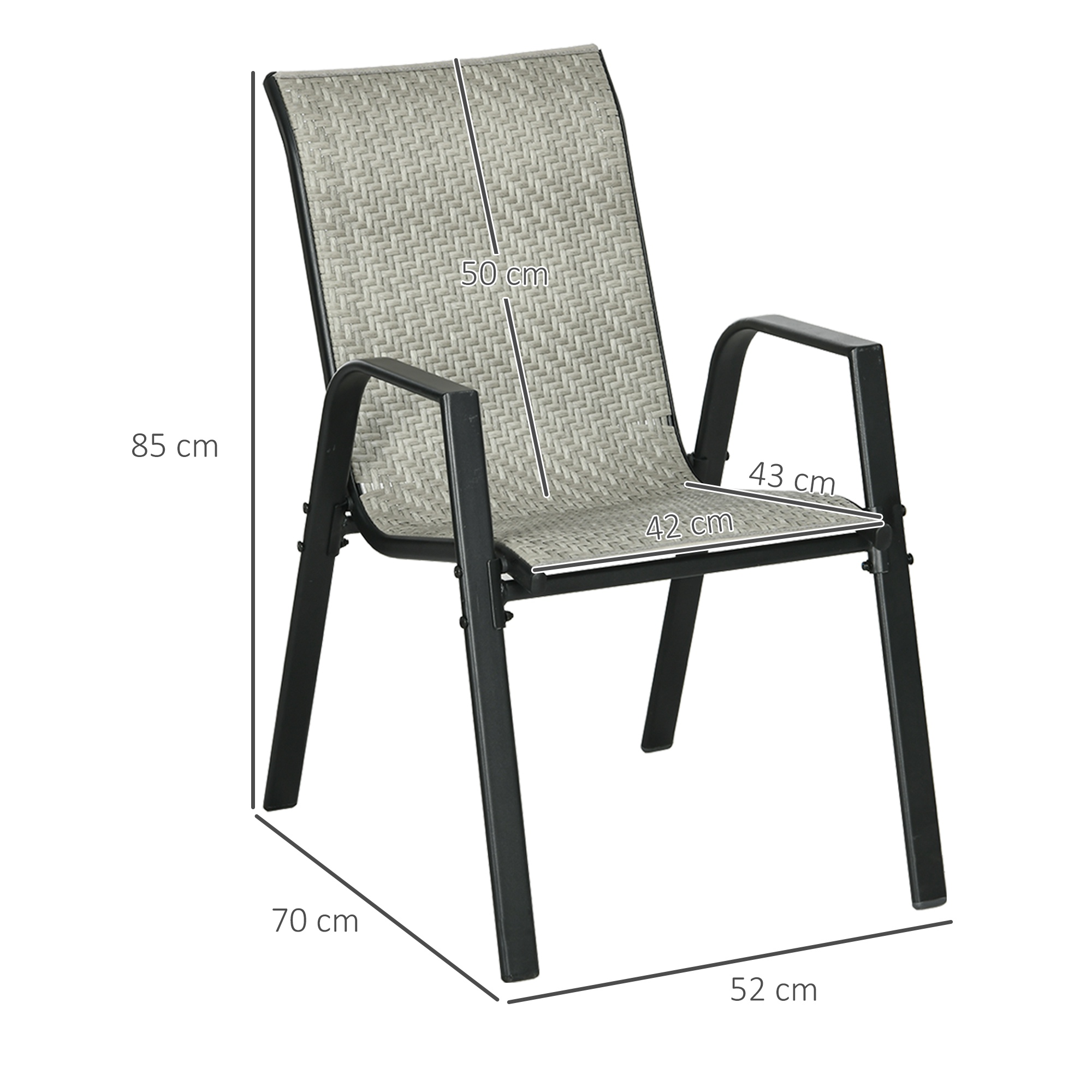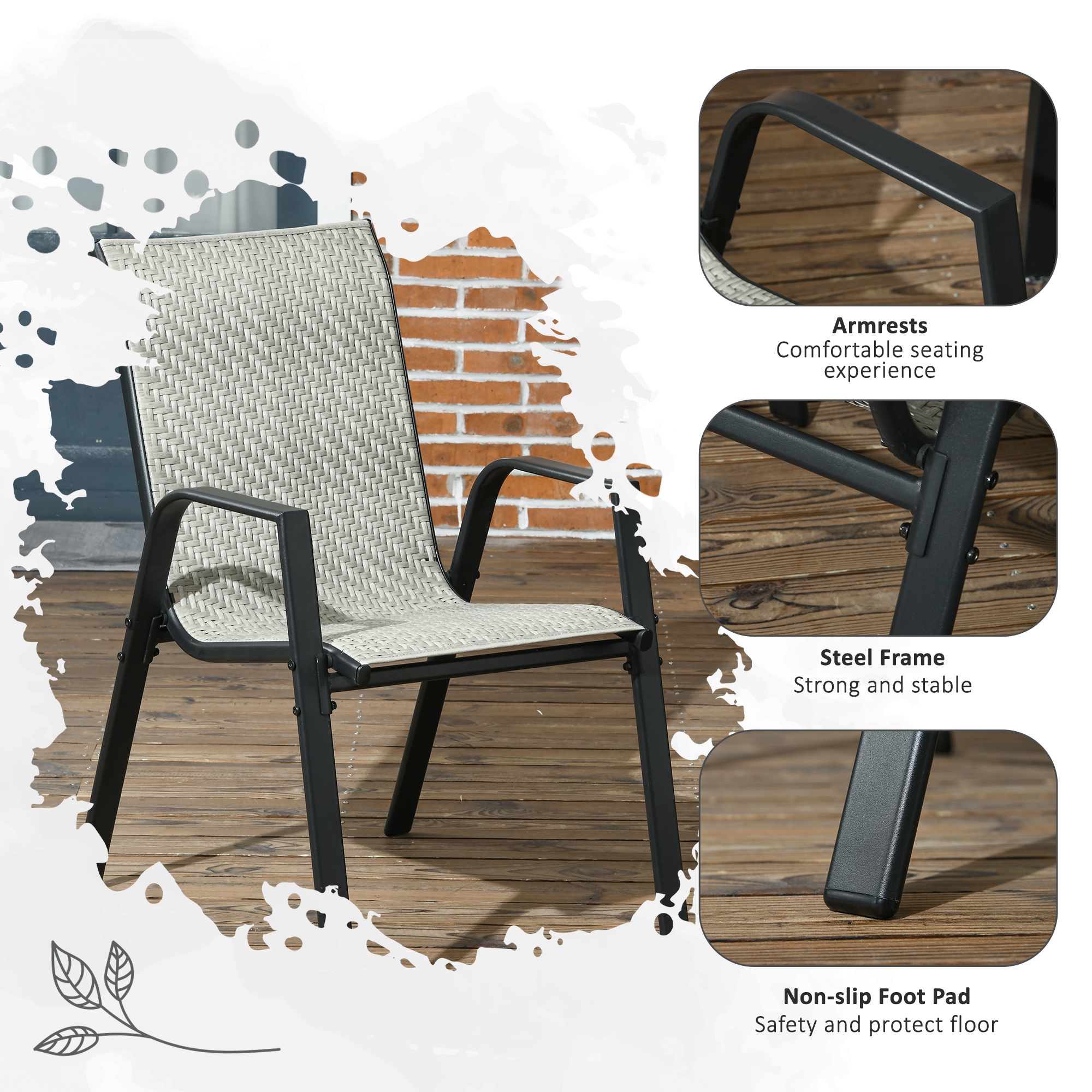 This Outsunny garden chair set is a simple set, suitable for all outdoor spaces. Powder coated steel frames mean a strong core, with rattan seats for a stylish garden look. The stackable design makes it easy to store all chairs away when not being used. Minimal effort for you; more time to enjoy outdoors.