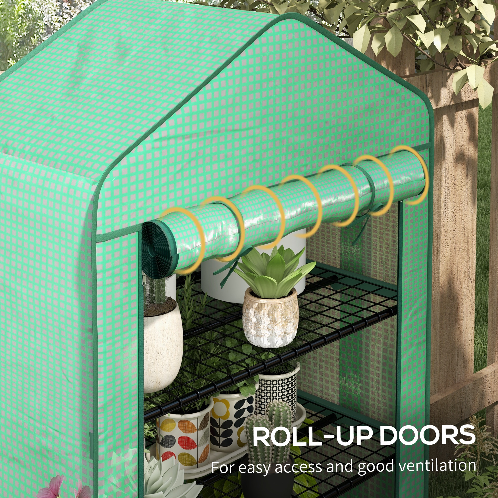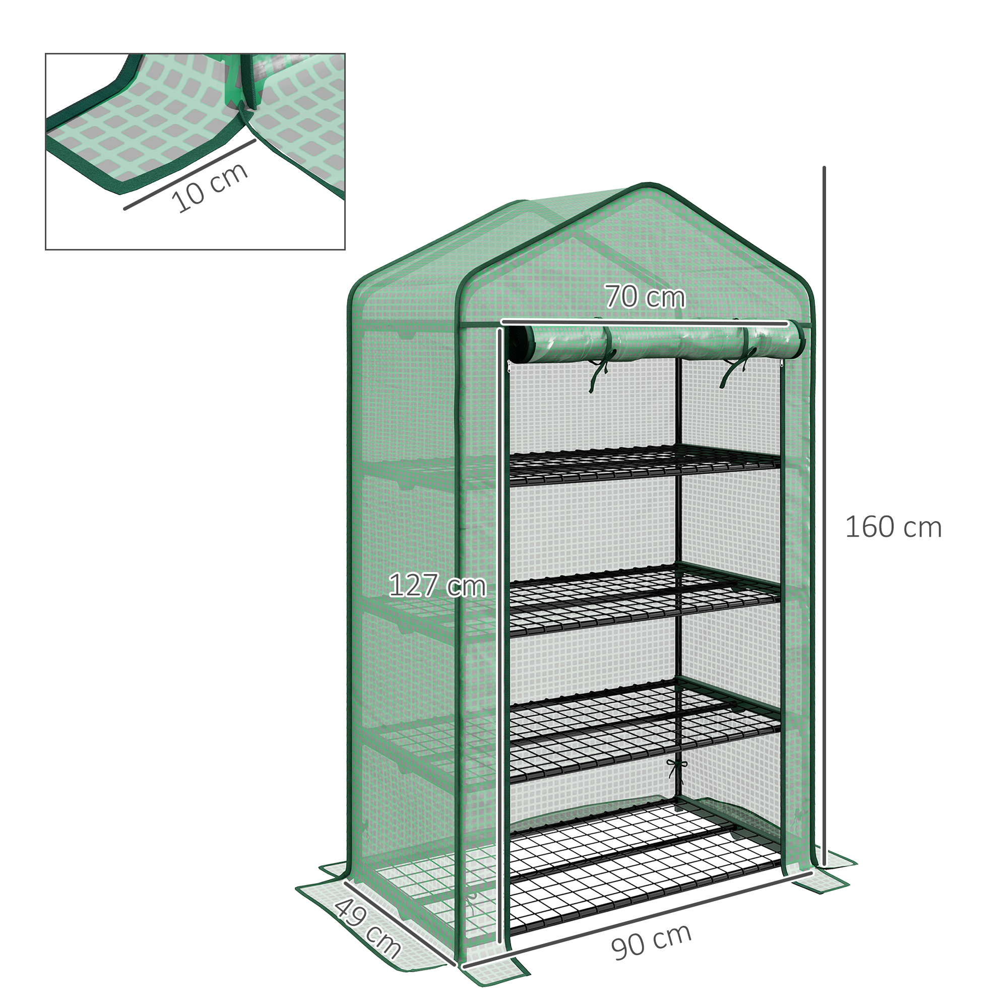 This Outsunny mini and portable greenhouse paves the way to growing plants, flowers and more practically anywhere. Great for those with smaller homes - perfect for putting on windowsills where no garden is available. A steel frame means a strong core, with four movable shelves to give you plenty of levels to organise greenery. The three-layer plastic cover creates safe inner shelter, with the inner mesh helping to prevent tears. Gardening, done anywhere.
