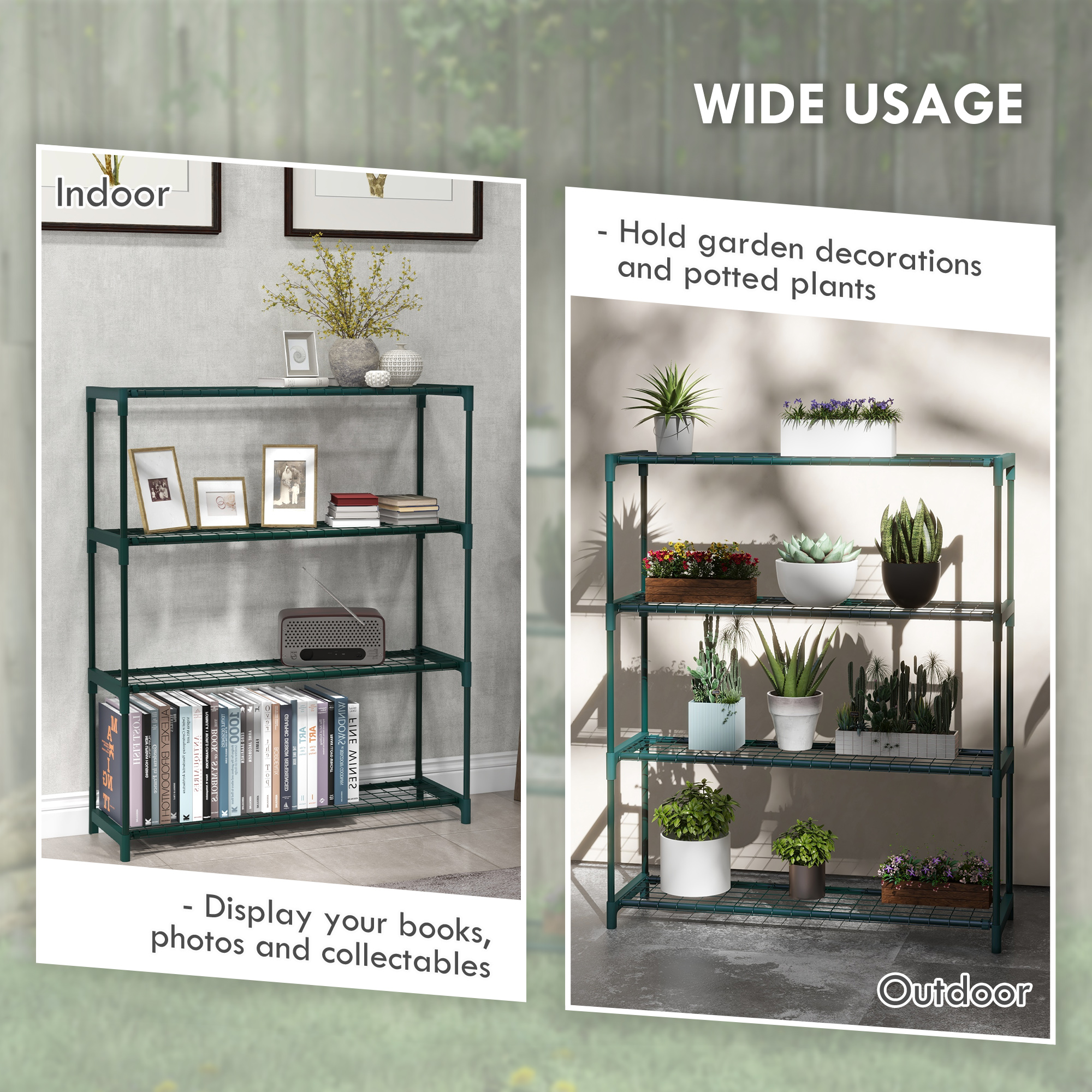An excellent place to hold and show off all your plants- this Outsunny tiered plant stand. The four-tier design means it's got plenty of room to display plants, flowers - even ornaments and books if you wish. Made from steel, the structure of this plant shelf is tough and will support everything in place. Use it all over the home, from the porch through to the conservatory.