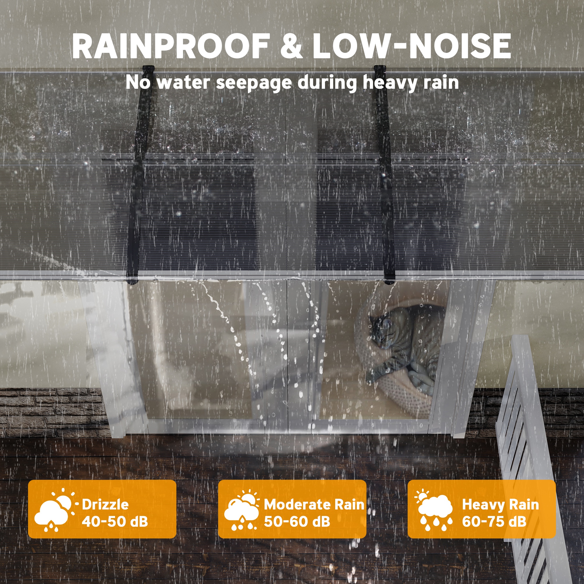 Keep the elements away from your doors and windows, all year long with this Outsunny door canopy. Curved shape covers a larger area, whilst preventing any build-up on the end half. The aluminium frame is strong so it holds on place; it can be easily mounted on the wall with all required accessories included in the package. Each panel features a UV-resistant coating for protection against damaging rays - whether it's sunny, gentle snow, moderate breeze or light-medium rainy.