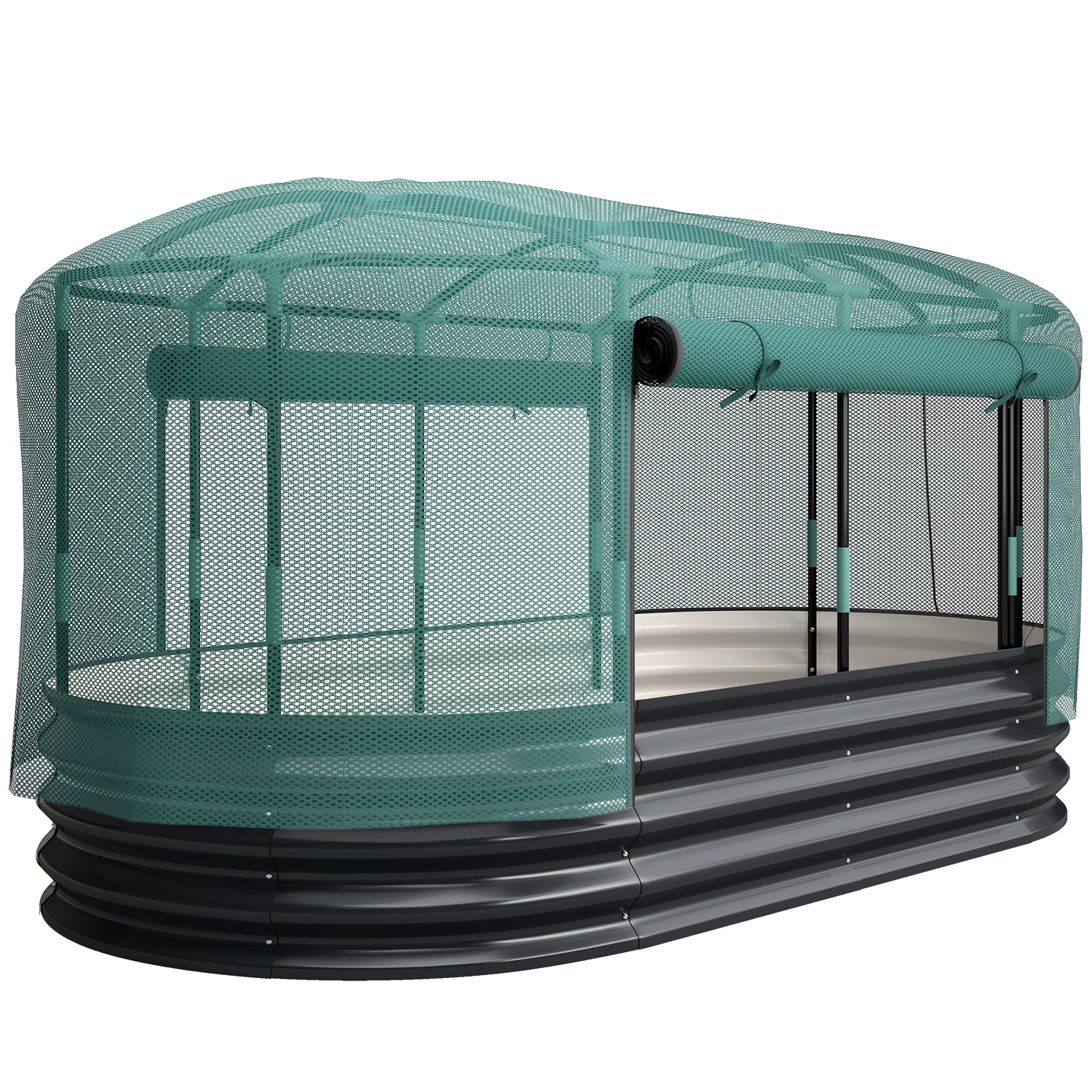 Keep your plants thriving with Outsunny's protective raised planter bed! Featuring an HDPE mesh crop cage, it shields your garden from pests and UV rays while promoting healthy growth. The open-bottom design ensures optimal drainage and the included irrigation kit delivers even watering with ease. With this clever garden essential, your plants can flourish while staying safe and sound outdoors!