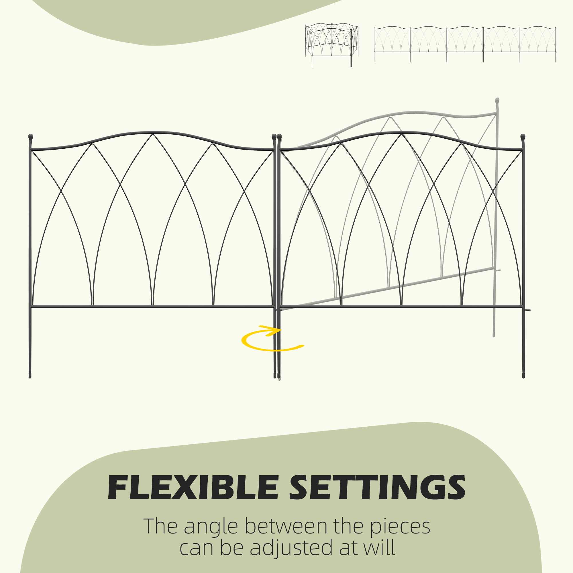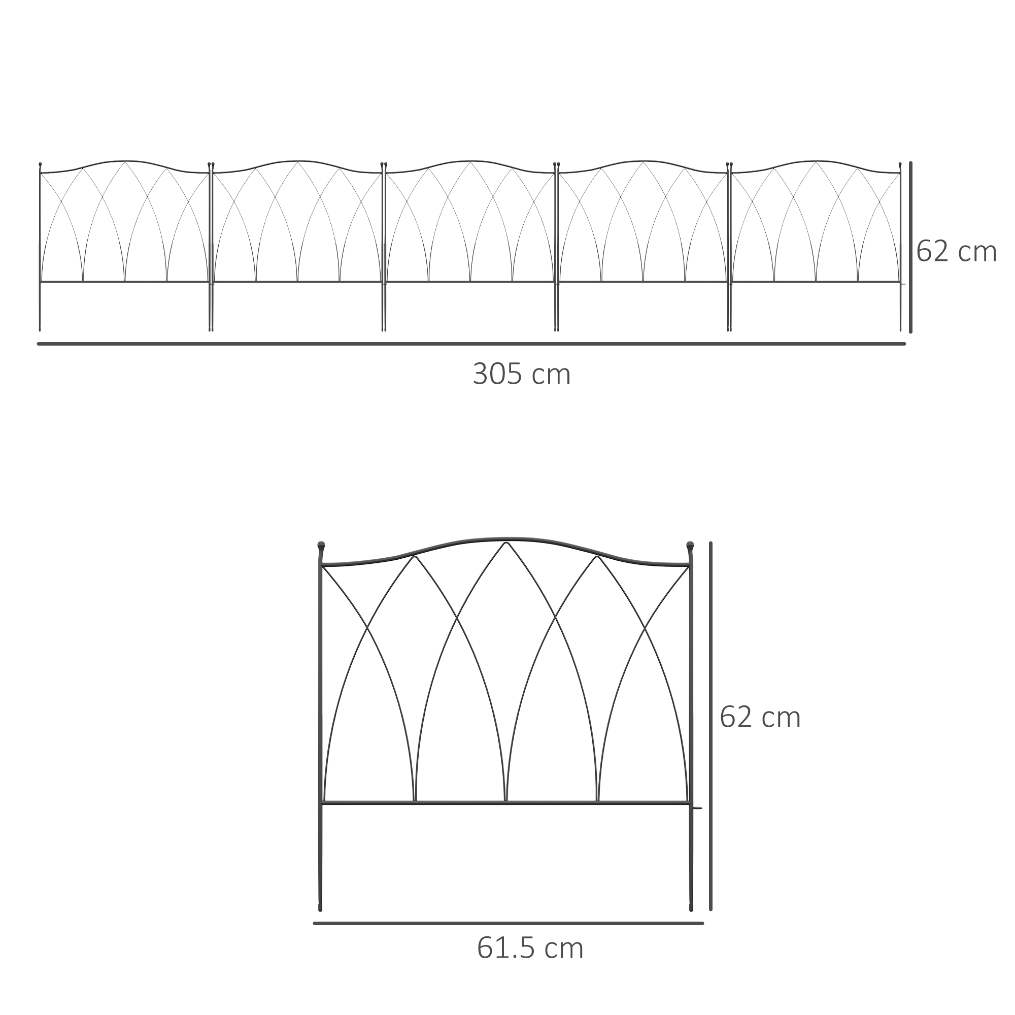 A decorative and practical garden fence that can easily be shaped to suit you: the Outsunny garden fencing panels are a great entrance to your home. 3.05m long, each panel can be flexed to a different position, making it great for obscure shaped areas. Made from metal for a strong structure, the powder coating offers extra protection and strength. Quick to assemble with the included clips.