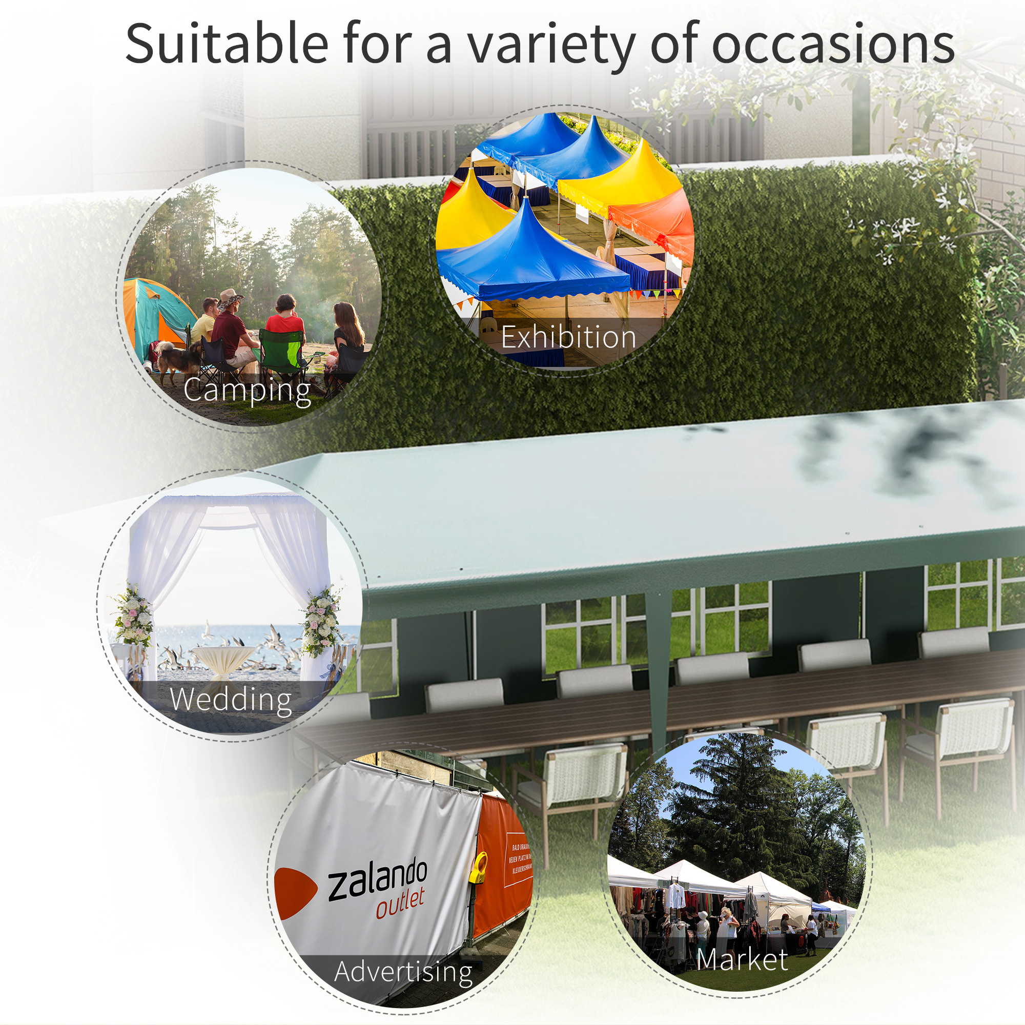 - 3 x 9m size is large and spacious: a generous event shelter