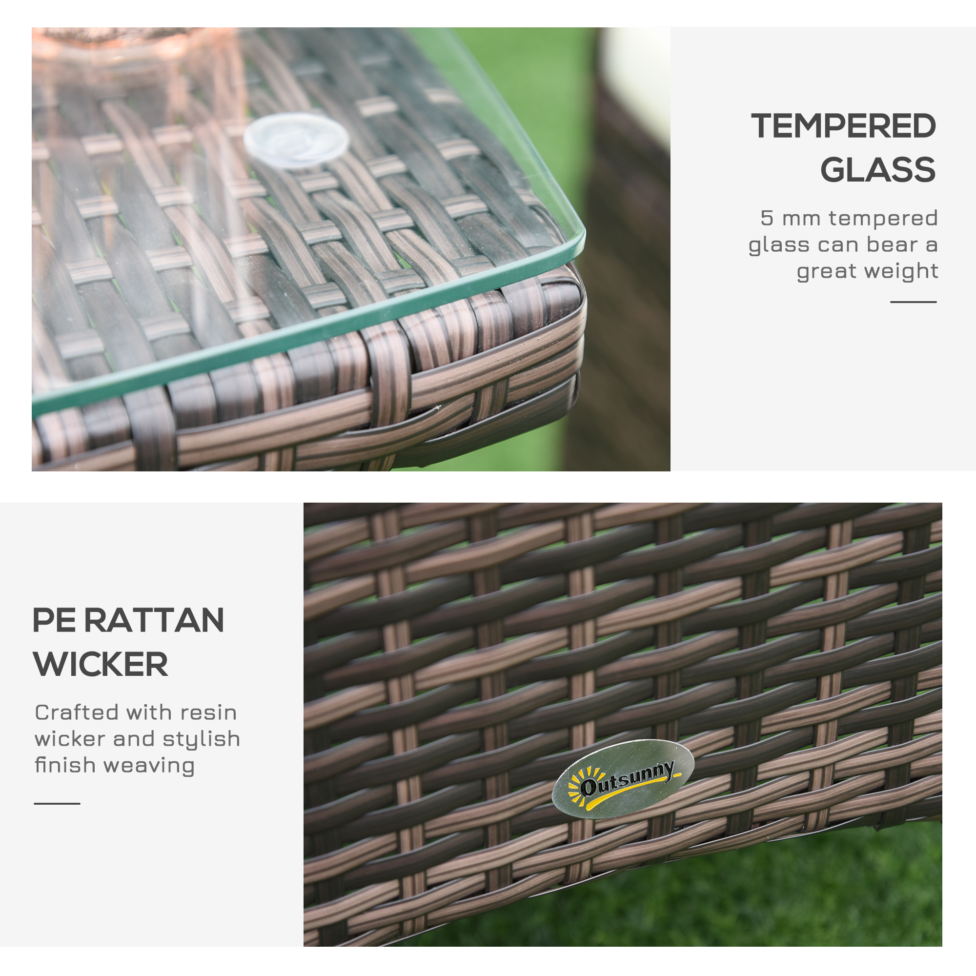 Outsunny 3pcs furniture set perfect as a conversation set for any patio, deck, sunroom, or garden, our Outsunny rattan coffee table and chairs will create a classic centerpiece in any setting. Made from PE wicker rattan, this set is UV resistant, water resistant, and is built to last. These lightweight chairs and table are easily movable and simple to store as the seasons come and go.
