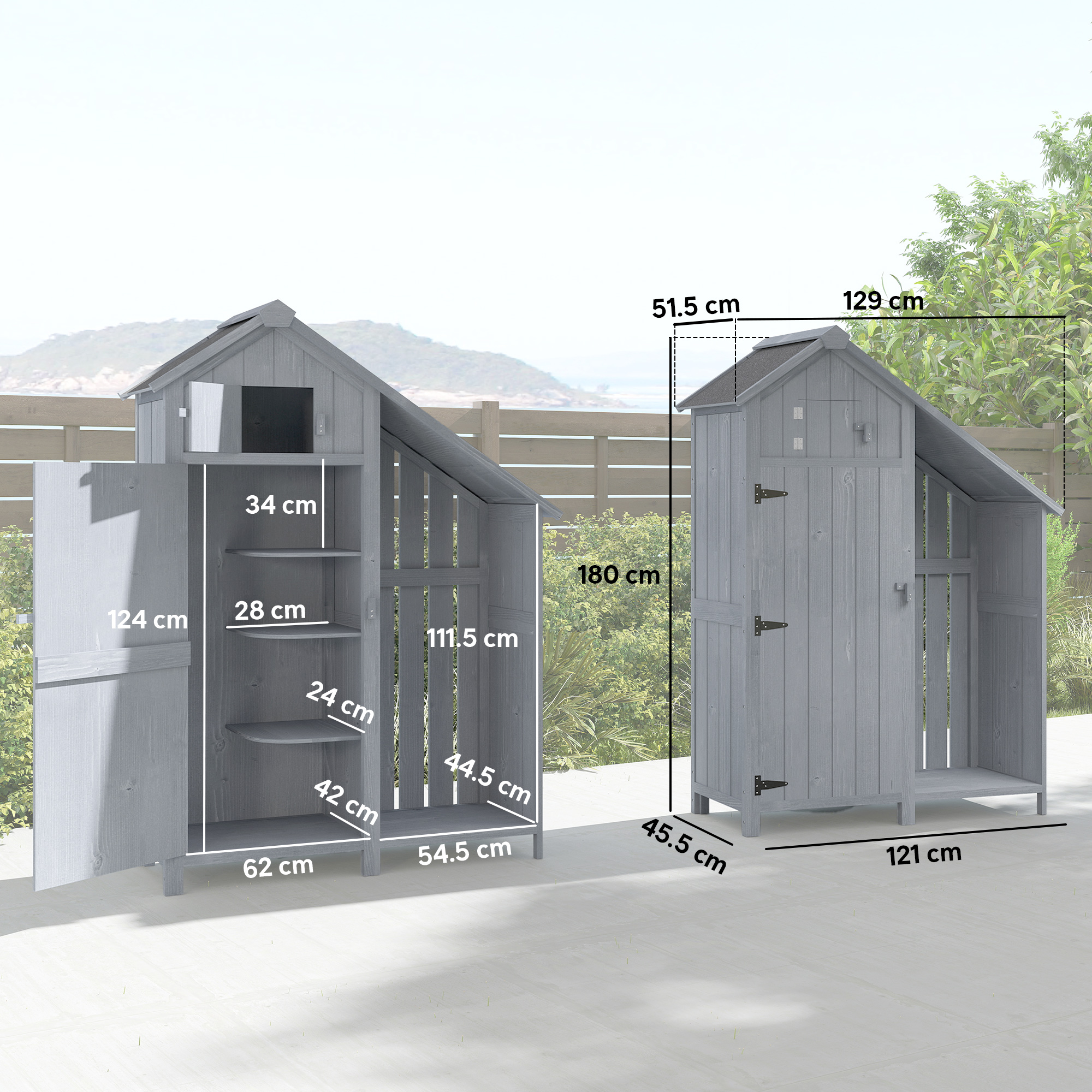 If you need a product to place some of your tools, this Outsunny garden shed will be your good partner,This wood garden shed with asphalt felt on the roof ensures everything will remain dry inside. Three shelf with different designs can be placed separately according to the size of the tool, saving you a lot of time for organising. Simple assembly