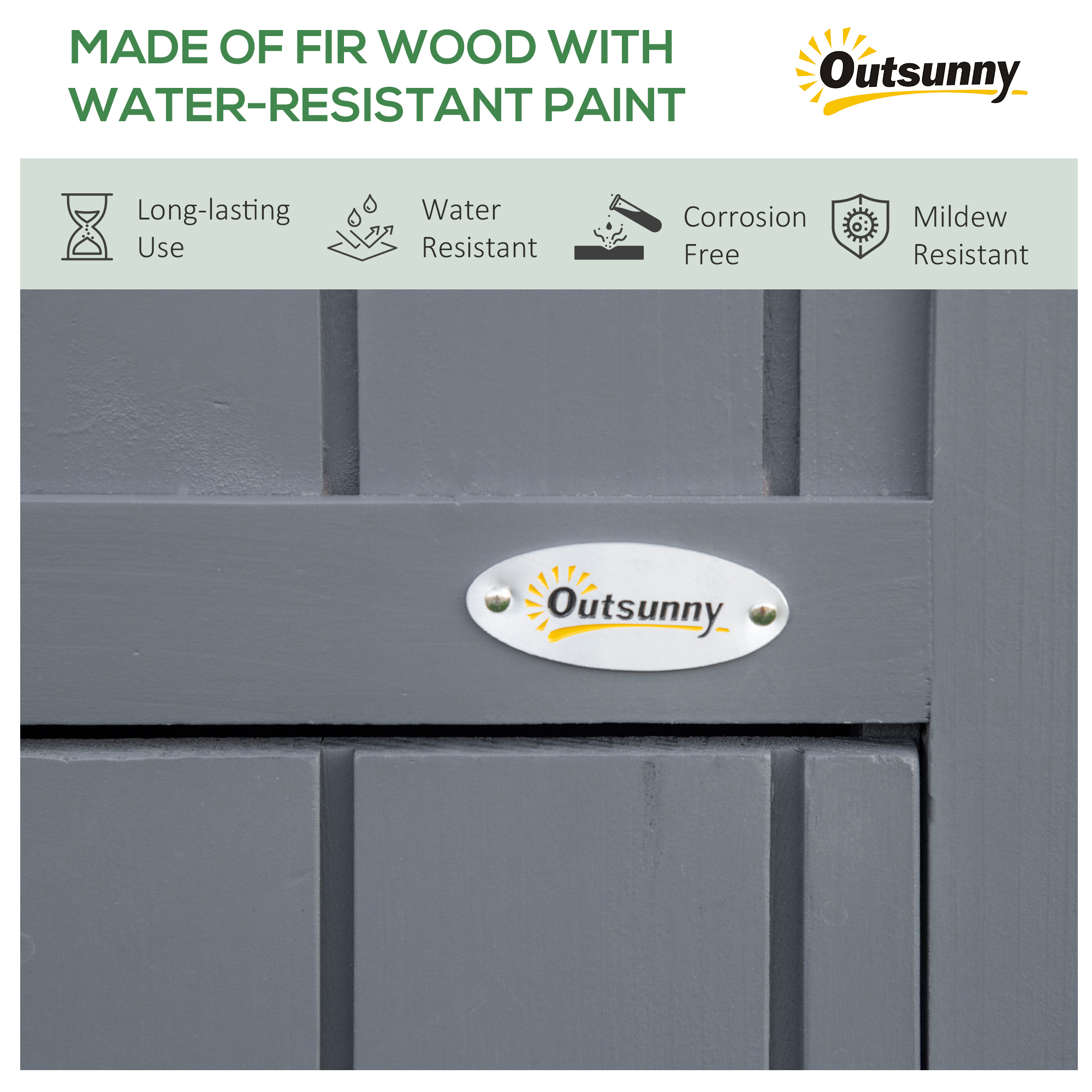 Whether you need open or closed storage for outdoors, Outsunny wooden sheds gives you both. The small wooden shed combines a closed storage section with door, open storage area and top storage box - plenty of room for garden equipment, tools and more. Made from fir wood, strong and durable - suitable for outdoor use. Asphalt cover on the slanted roof helps prevent water leaking through: helps prevent inside items getting wet. Complete with rotating block lock on the door for security.