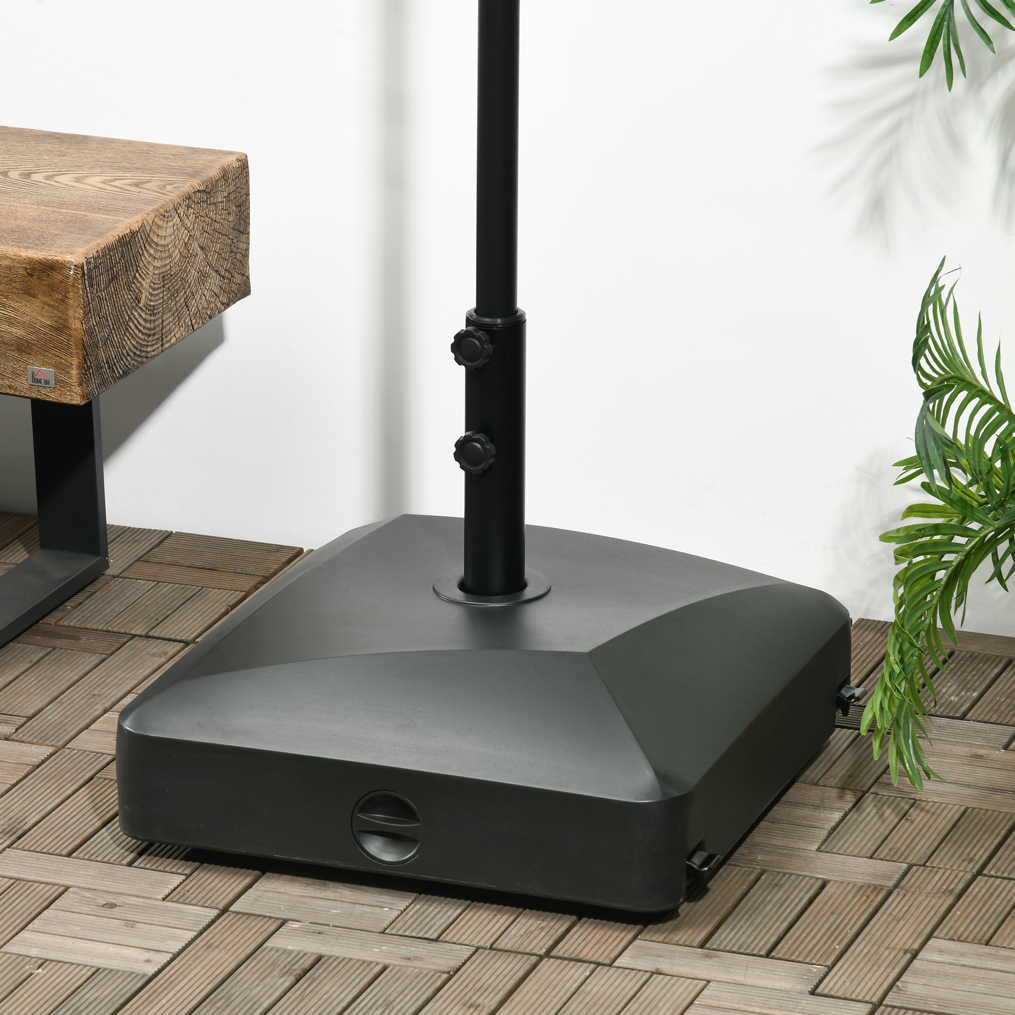 Ensure your parasol is always held firmly in place with this garden parasol base from Outsunny. Fill with water to weigh 43kg or sand for 60kg - or, mix both together for extra weight. The shell is made from plastic for a strong and durable structure. Features a filling port for easy fill and clean. Whether you wish to use this for the garden, patio or wherever else outdoors, this outdoor umbrella stand will help you out.
