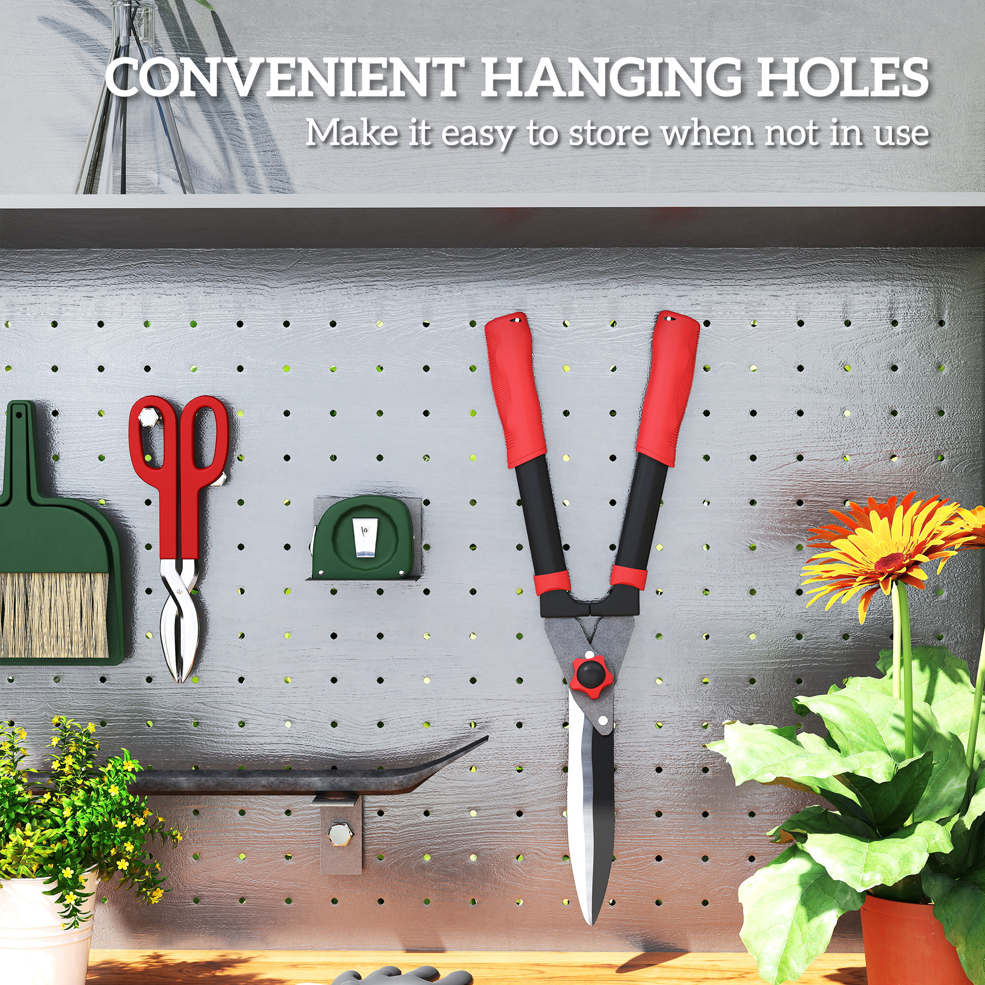 Discover the versatility of Outsunny's hedge shears for gardening, suitable for trimming grass, shaping hedges and pruning shrubs. Featuring polished wavy-edges for effortless cutting and a tension adjustment knob for custom tightness. Enjoy comfortable handling with soft-grip plastic handles. Make gardening a breeze with the long handled garden shears!