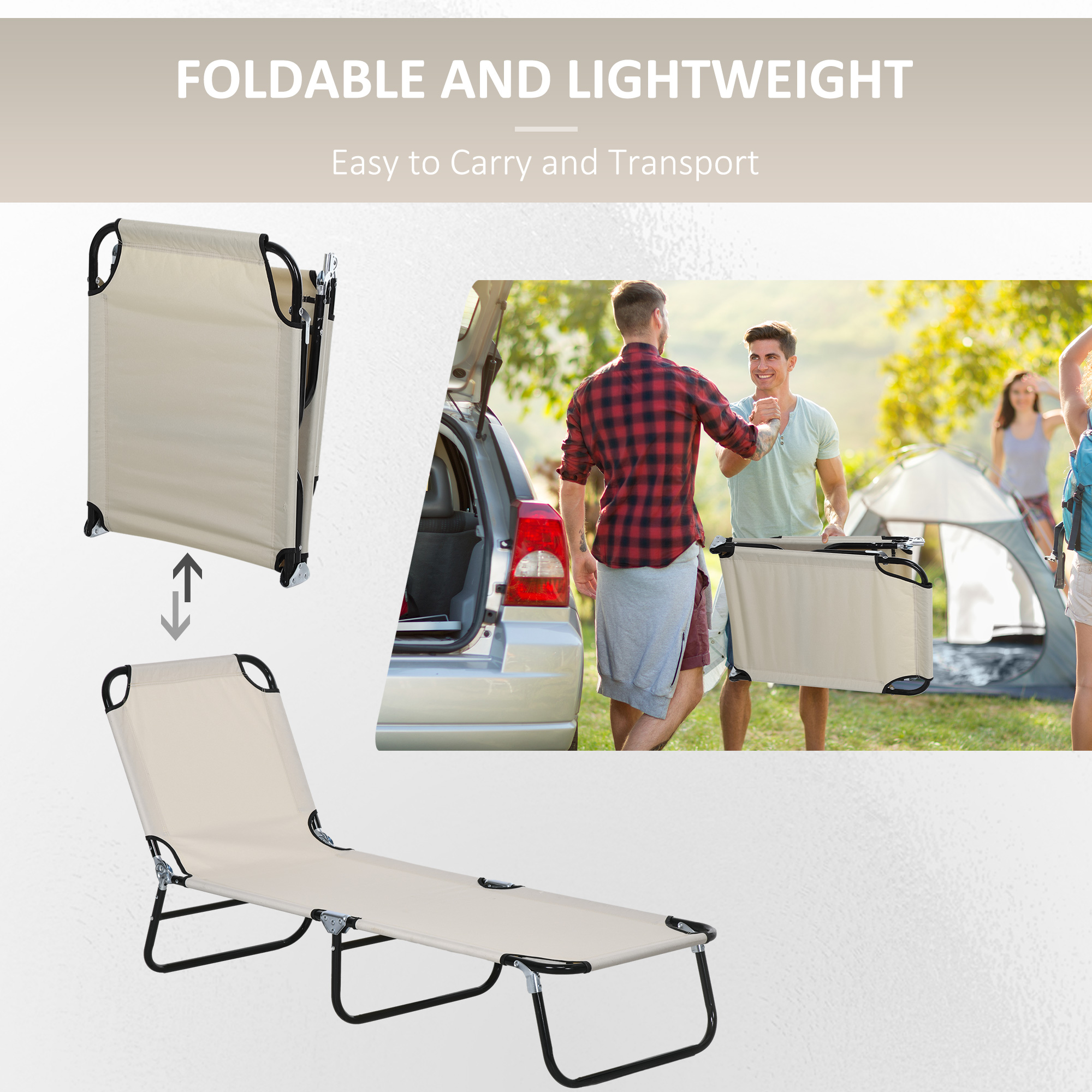 Our Outsunny folding sun lounger is strong, comfortable and will support you all afternoon long. Reinforced metal frames keep you supported - fabric seats are fitted to keep you comfortable. Three long legs keep the lounger balanced. The back can be set to five different positions - choose a position you prefer.