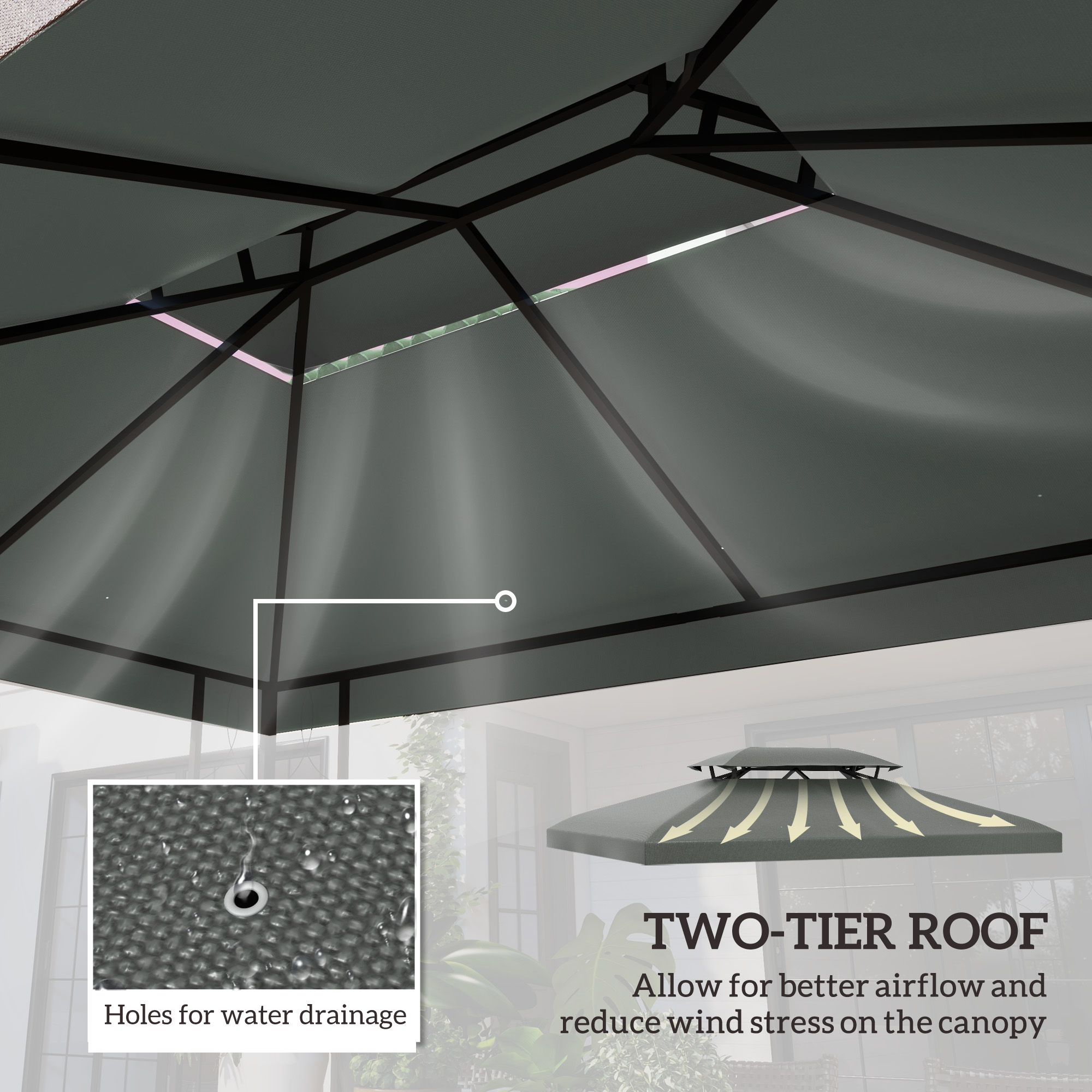 - Gazebo frame and side walls not included