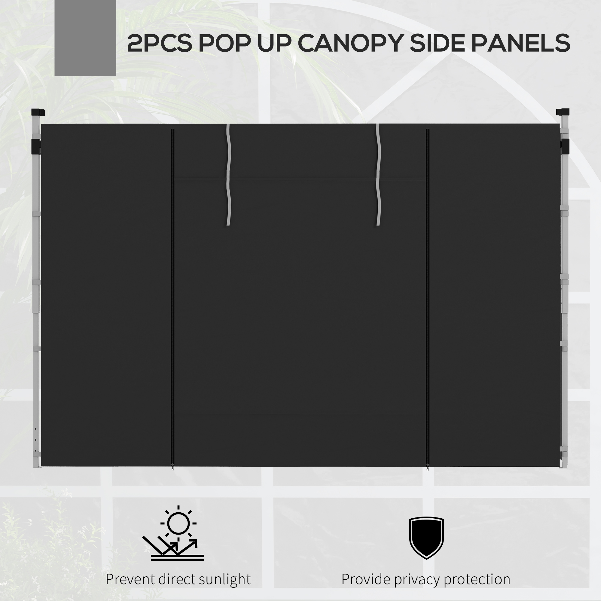 Designed to fit most 3 x 3(m) or 3 x 6m canopies, these Outsunny gazebo side panels give outdoor canopy tents a new lease of life. A set of two walls made from thick 210D Oxford cloth - suitable for outdoor use. Both walls feature a window to allow light through and a door to go in and out easily. To use, attach with the straps: super easy. Please note that only walls are included; the gazebo frame is not.