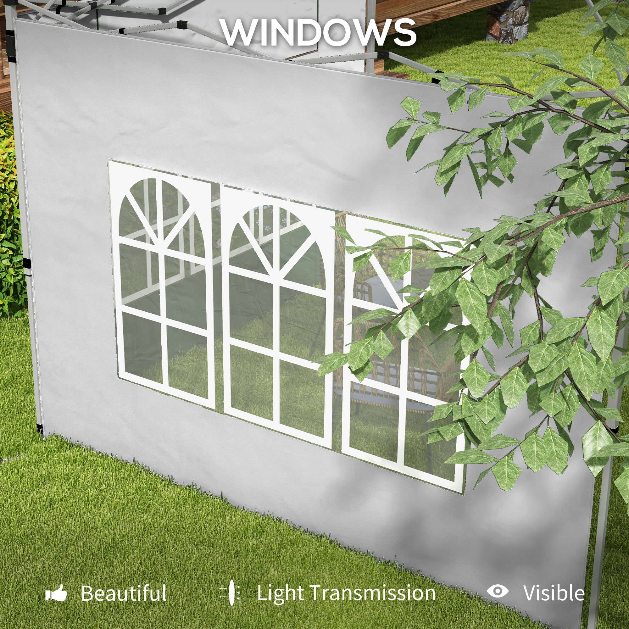 Designed to fit most 3x3(m) or 3x4m canopies, these Outsunny replacement walls give a new lease of life to outdoor furniture. A set of two walls, made from durable oxford cloth - suitable for outdoor use. Both walls feature a window to allow light through and see outside easily. To use, simply attach with the straps: super easy. Please note - only walls included, gazebo frame is not.